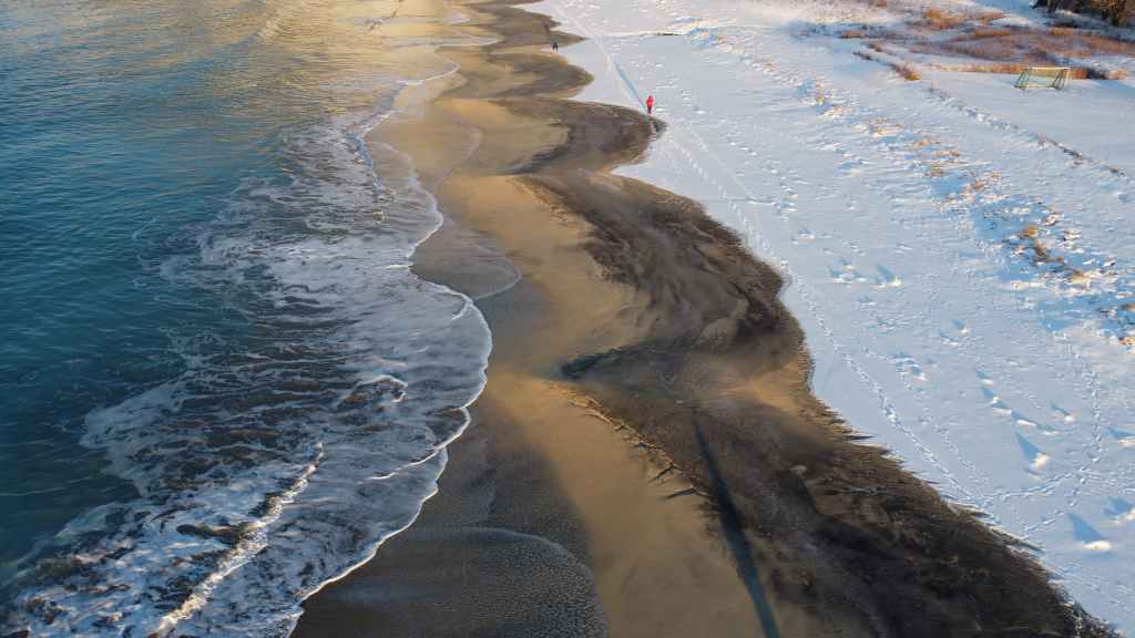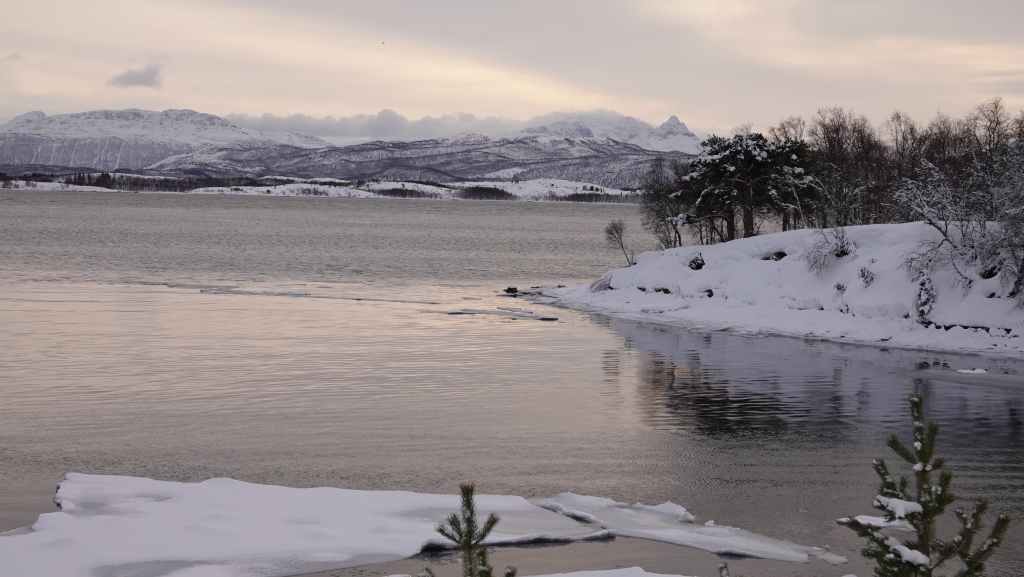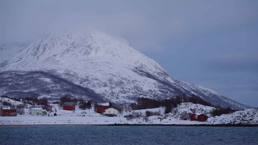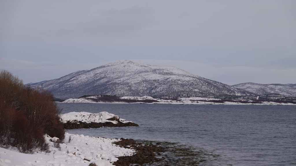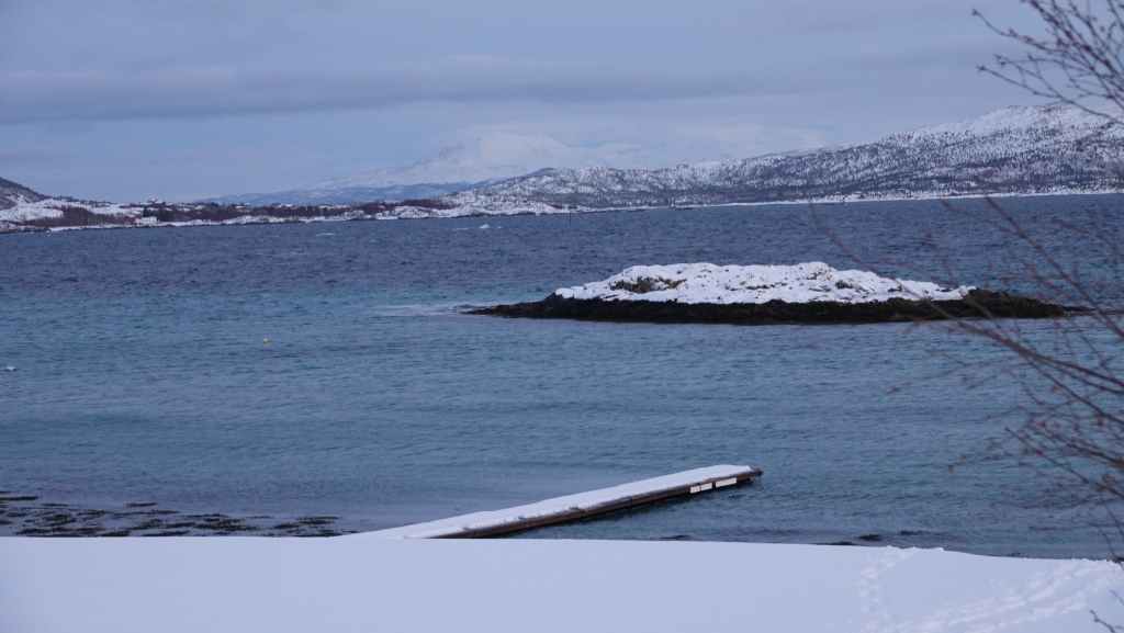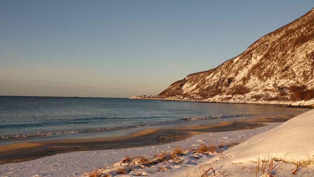 Puis, nous rejoignons Torksen, sur l’autre flan de la montagne, également village de pêcheurs. Nous avions déjà visité ces 2 villages en 2012. Puis, nous remontons à Bovaer où nous nous baladons sur la plage enneigée. Nous prenons notre repas dans la voiture et face à la mer.