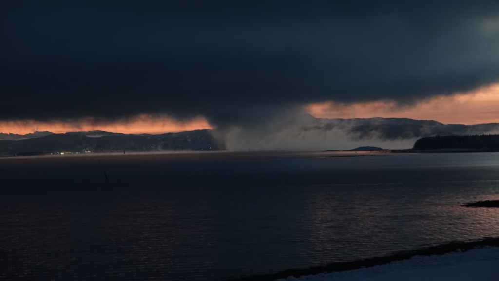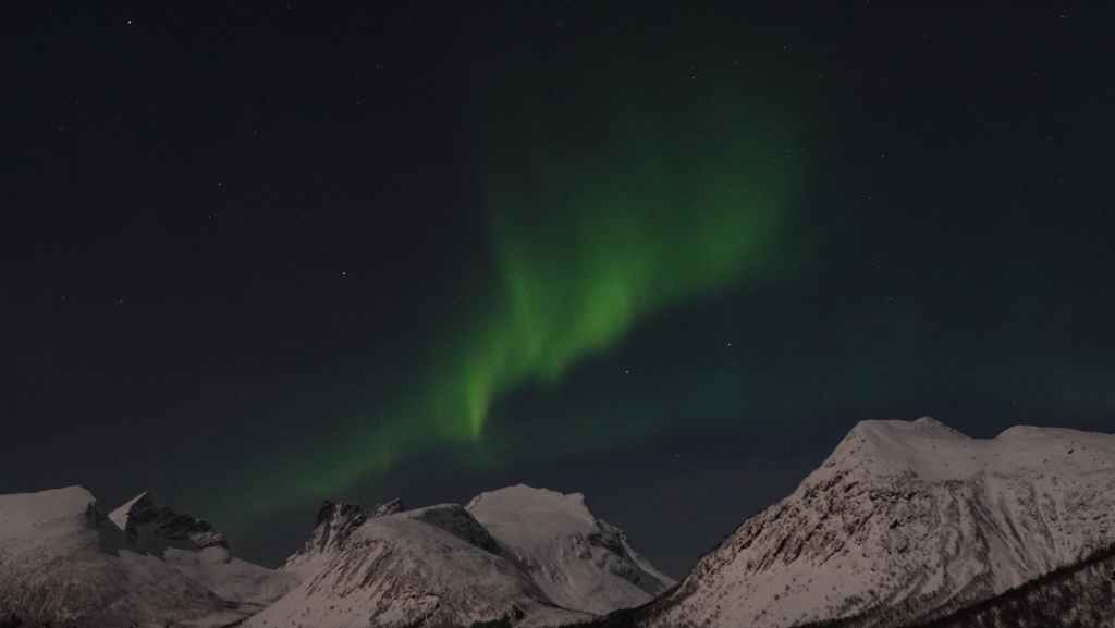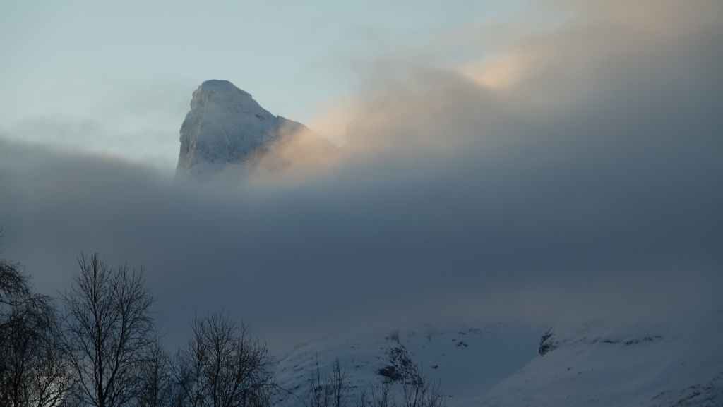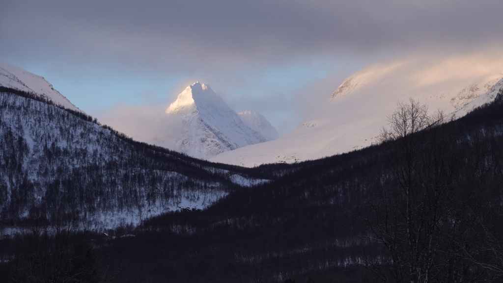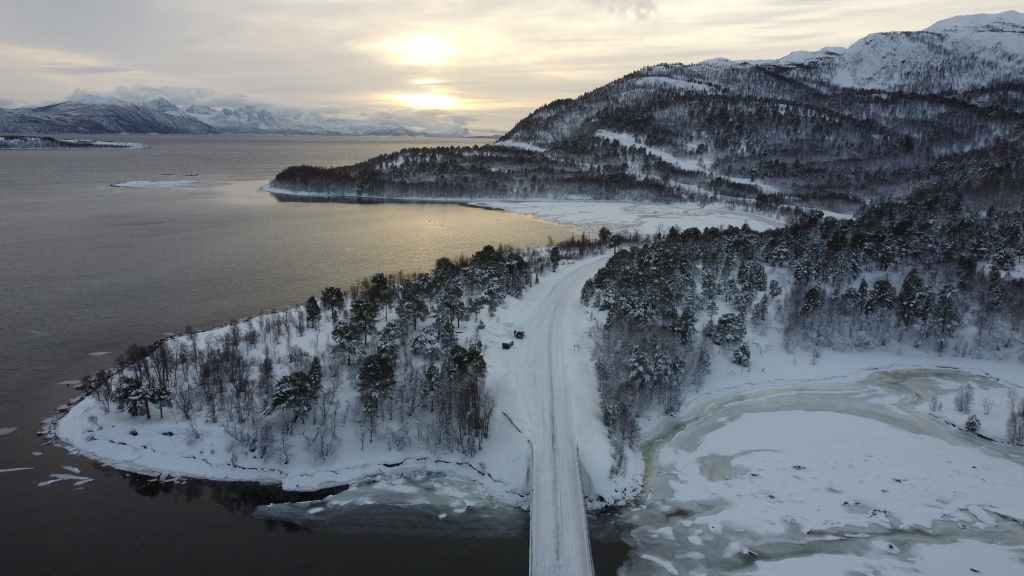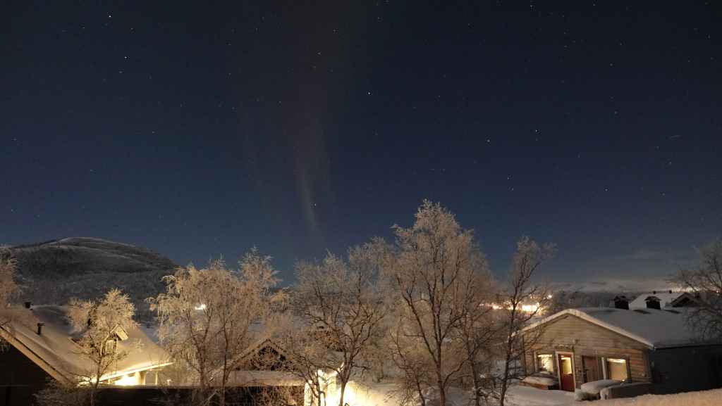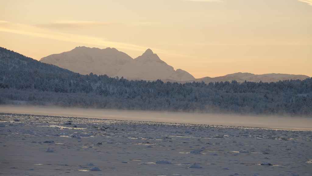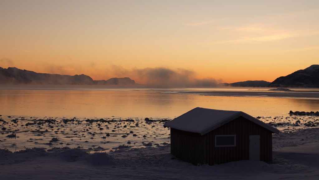 En soirée, bien que le ciel se charge de nuage, nous tentons une nouvelle chasse aux aurores. Nous allons jusqu’à Hamn, mais l’épaisse couche nuageuse qui recouvre la mer de Norvège, nous stoppe dans notre quête. La température est remontée à 0°C et annonce de prochaines chûtes de neige.