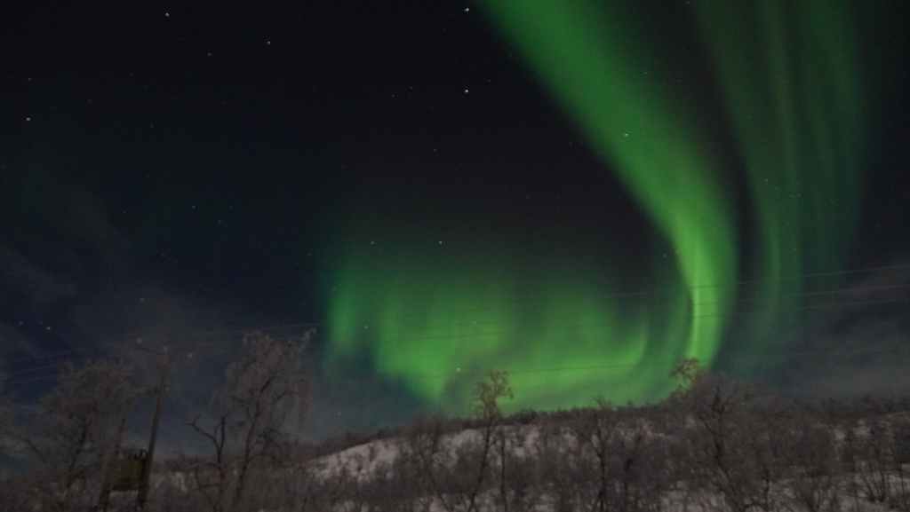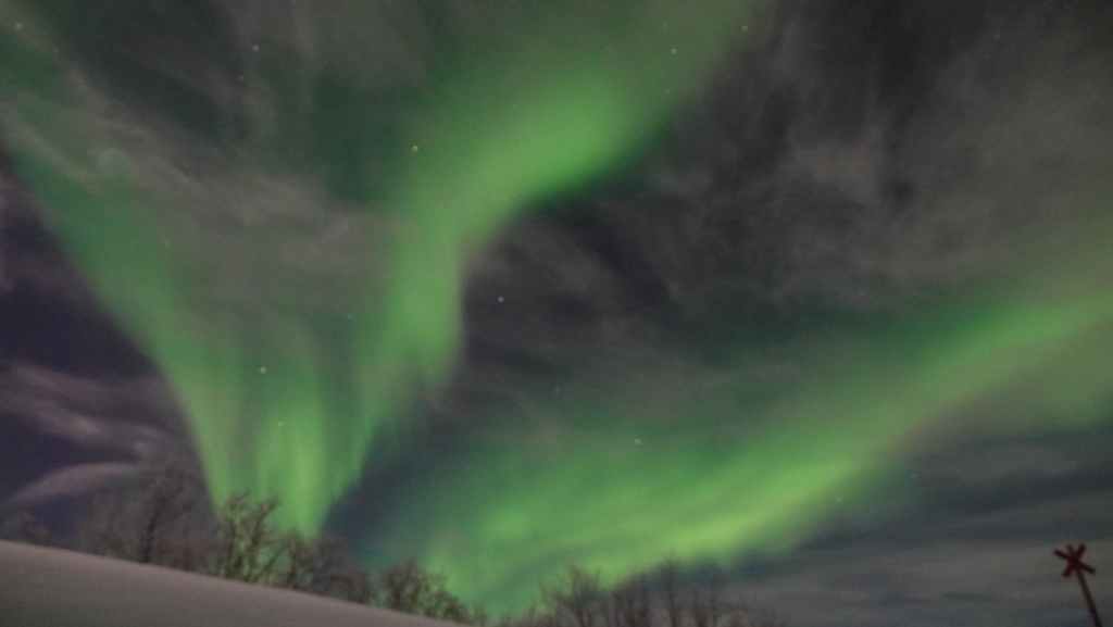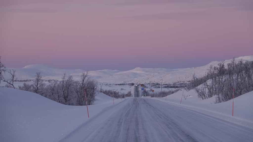 Au retour à l’agence, nous reprenons notre voiture et repartons en direction de la Norvège pour profiter des couleurs et du beau temps. Nous n’avons pas mangé ce midi, mais peu importe, ce sont les vacances ! Pour le coucher de soleil, aux alentours de 15h30, nous avons à nouveau droit à ces jolies couleurs rosées, semblables à celles du matin. Le soir, nous fêtons un anniversaire au restaurant Tundrae (nous recommandons !) qui propose aussi des hébergements, avant de rentrer à l’appartement. C’est vers 22h00 que nous assistons au spectacle émouvant des aurores boréales depuis notre terrasse…
