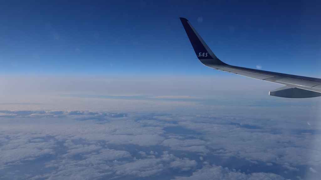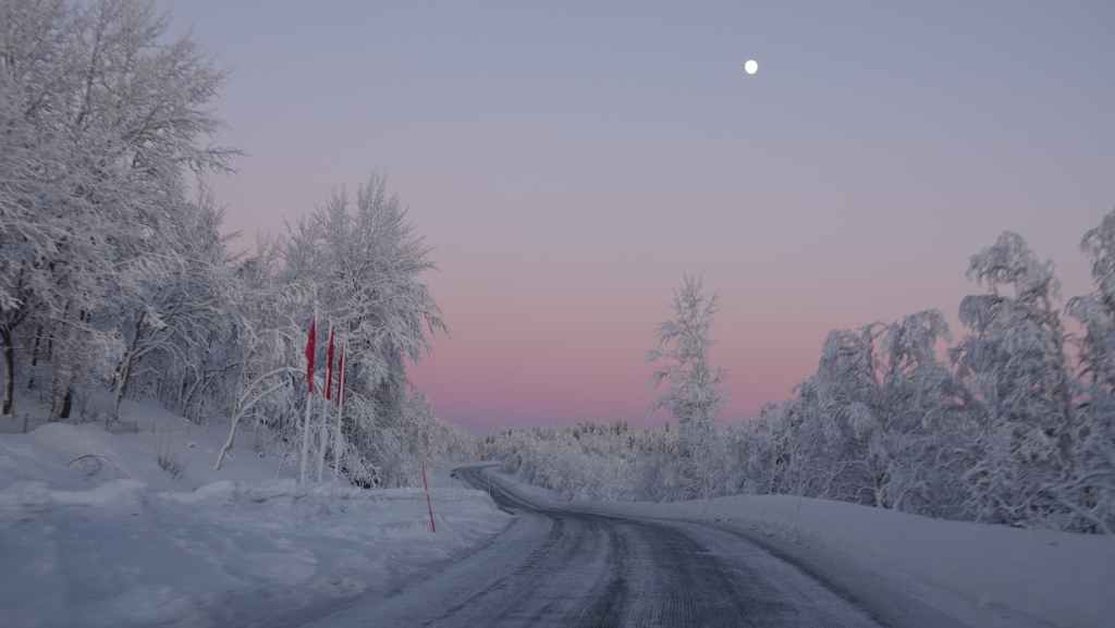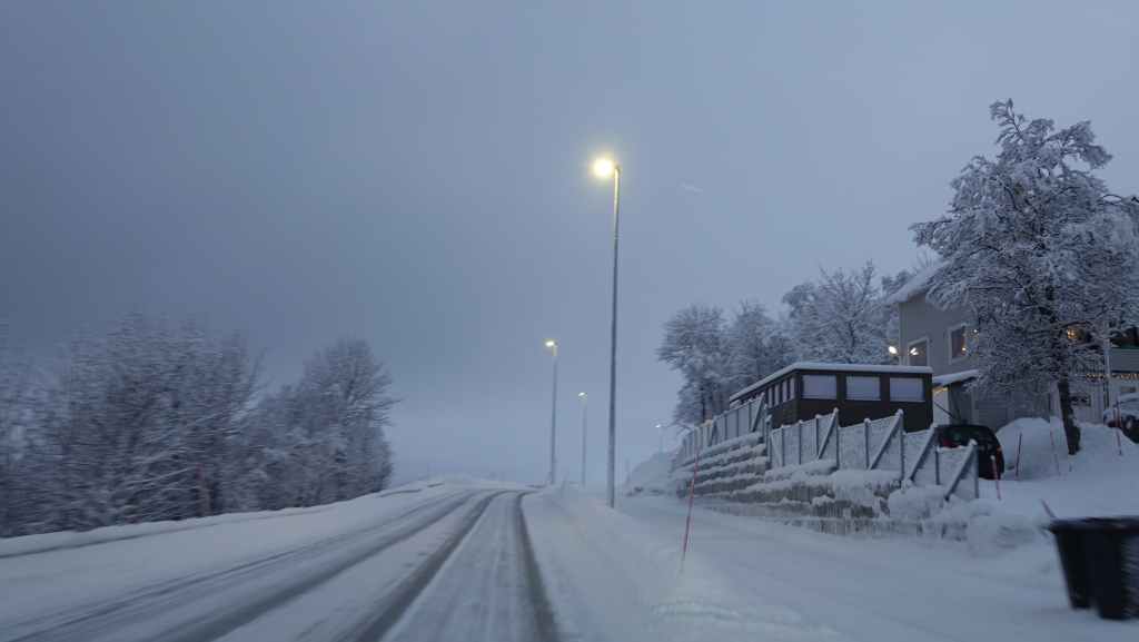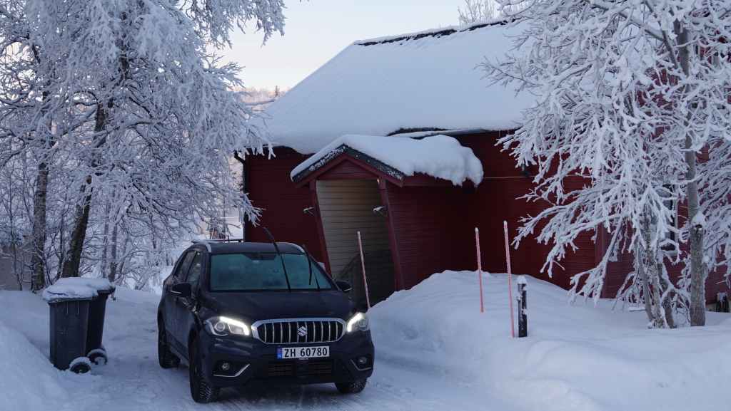 Nous quittons la maison à 7h10 pour 4h20 de route via Champlitte (70), puis l’A5 jusqu’à un parking privé avec navette (à déconseiller) près de Roissy CDG. Notre avion décolle à 14h00. Escale à Oslo de 2h30, Puis atterrissage à Tromsø à 20h40. Nous prenons livraison de notre Suzuki S.Cross sans aucun problème, même si le modèle que nous avions réservé (un Vitara) nous semblait supérieur dans la gamme. Equipée de très bons pneus neige, nous regretterons le dernier jour, l’absence de pneus cloutés…