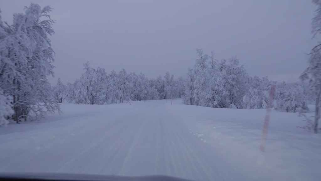 A notre arrivée, la température est supérieure à O°C et il pleut. Du coup, la route pour la Finlande est difficile mais en s’approchant de la frontière, la température se refroidit et la pluie cesse, sans pour autant se transformer en neige. On arrive à l’appartement à minuit et demi, bien fatigués ! Après quelques difficultés à ouvrir la porte, on pénètre dans un bel appartement mais vraiment cradingue !!! Sans trop y croire, on contacte le proprio via l’application… mais il nous répond instantanément. On lui explique notre problème (sol sale, vaisselle qui traine, cuisine, four et frigo horribles, nourriture périmée dans le frigo…). Après négociation, il nous offre une nuit de location. Du coup, on aura le ménage à faire le lendemain, mais pour l’heure, nous partons nous coucher après avoir fait notre lit (pas très propre non plus).