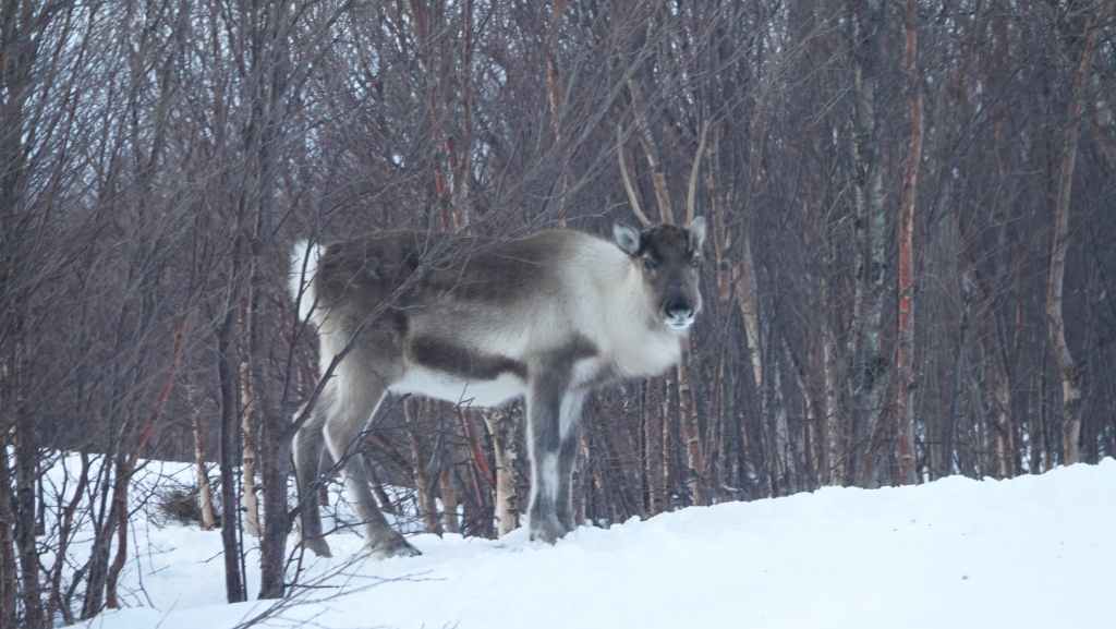 Nous y croisons des rennes et observons un pygargue à queue blanche (aigle pêcheur) qui plane un long moment au-dessus de nos têtes. Nous avons la chance également de pouvoir observer les îles Vesterålen, plein ouest. Au retour, nous faisons une incursion, via un col, au village de pêcheurs de Rødsand posé sur les rives du Bunkelfjorden.