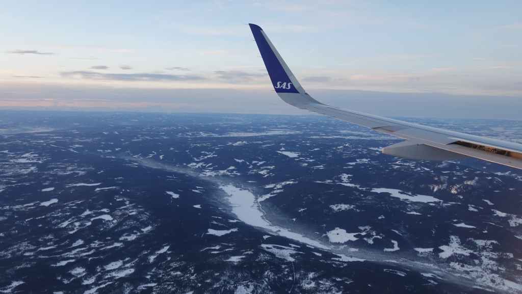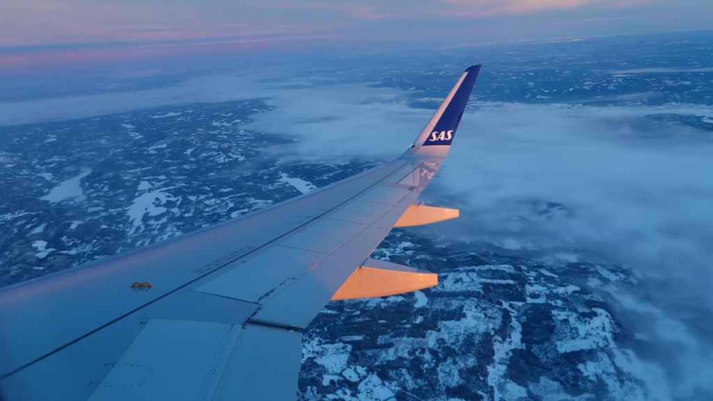 Sur 3 ou 4 semaines, nous partons en voiture mais sur 10 jours, c’est évidemment impossible et c’est en avion que nous rejoignons Tromsø, à 350 km au nord du cercle polaire. Nous avions réservé ce voyage très tôt en 2022 et n’avions pas trouvé de vol direct. C’est par la compagnie scandinave SAS que nous partons depuis Roissy avec une escale à Oslo. Comme en 2019, nous avons loué une voiture 4×4 chez Hertz à l’aéroport, malheureusement équipé de très bons pneus hiver mais pas de pneus cloutés… Pour les logements, nous avons réservé sur Airbnb.