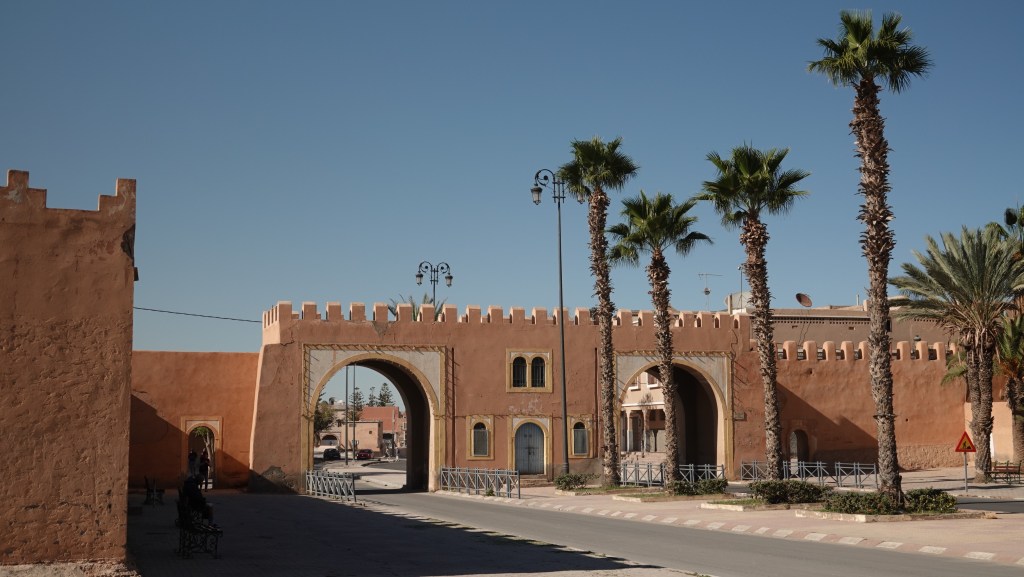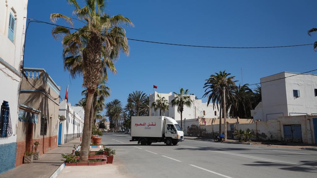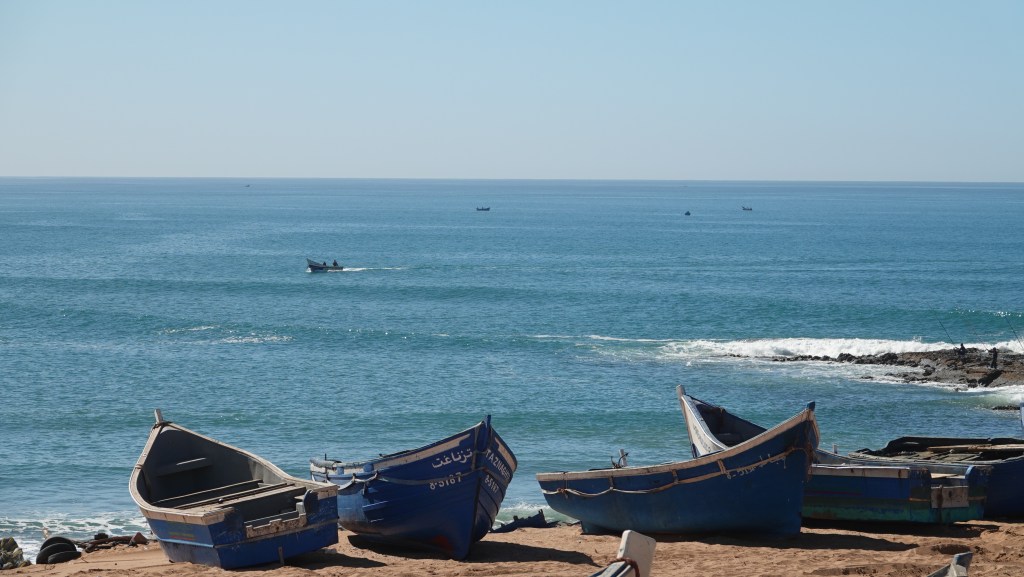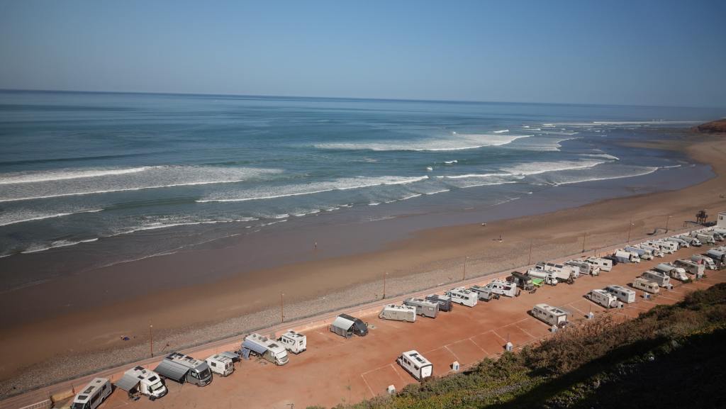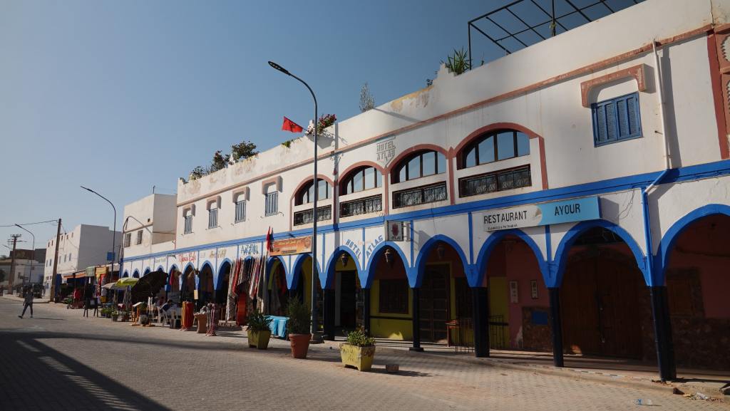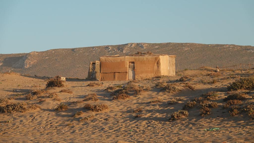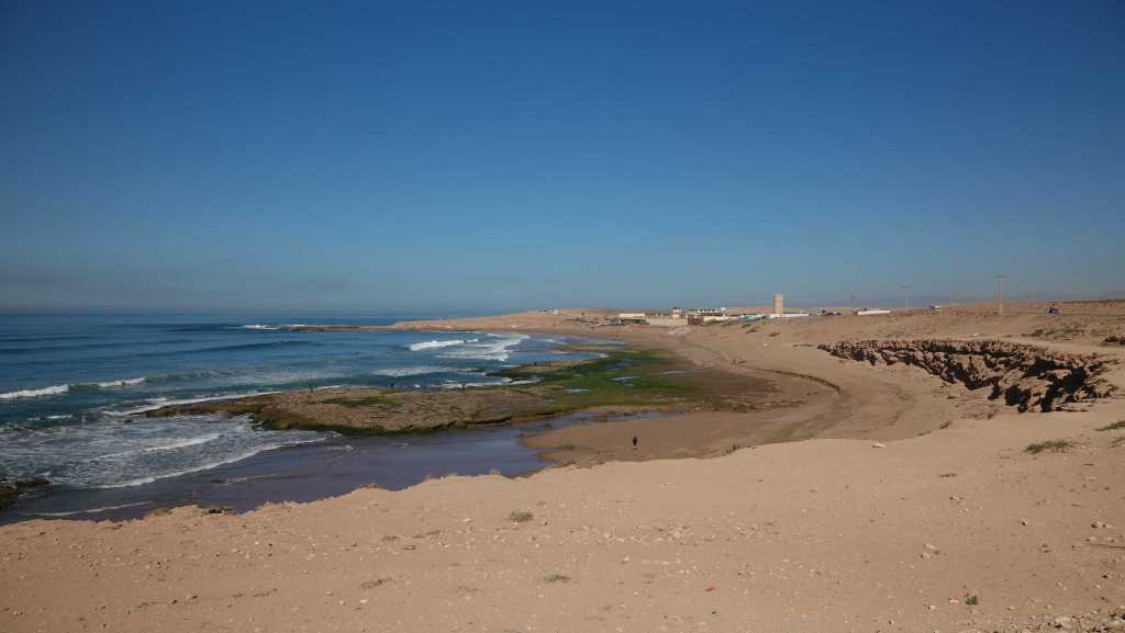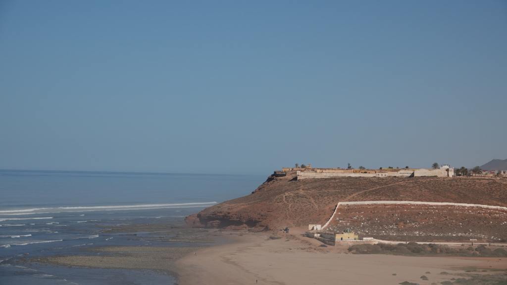 Nous rejoignons la côte atlantique et la plage de Tifnite où de nombreuses cabanes de pêcheurs et d’autres ont été détruites manu militari par L’Etat marocain. Reste juste la « criée » avec un restaurant fermé. Mis un marocain nous fait de la pub pour son resto de plage. Un conseil : garez vous sur le parking avant le bâtiment car sur celui qui se trouve après, un homme au gilet jaune vient vous réclamer des sous à votre retour sous couvert d’entretien de la zone poussiéreuse…