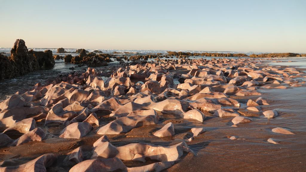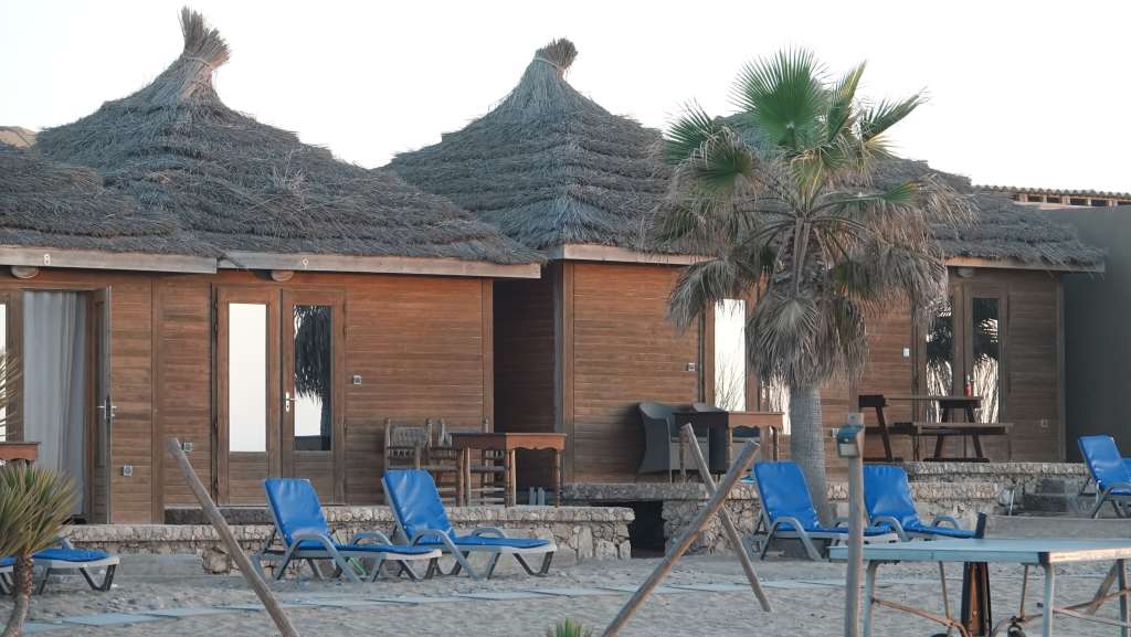 Une dizaine de cabanes – chambres encadre le bâtiment principal avec restaurant. Il y a même une piscine. L’accueil du gérant est correct, sans plus. Les « petits employés » sont bien plus sympas. Le lodge est légèrement en hauteur de la plage et on fait une longue balade les pieds dans l’eau. Après le repas et le coucher de soleil, nous regagnons notre cabane pour une bonne nuit… avec bouchons d’oreille, car encore plus que la veille, le bruit des vagues est omniprésent.