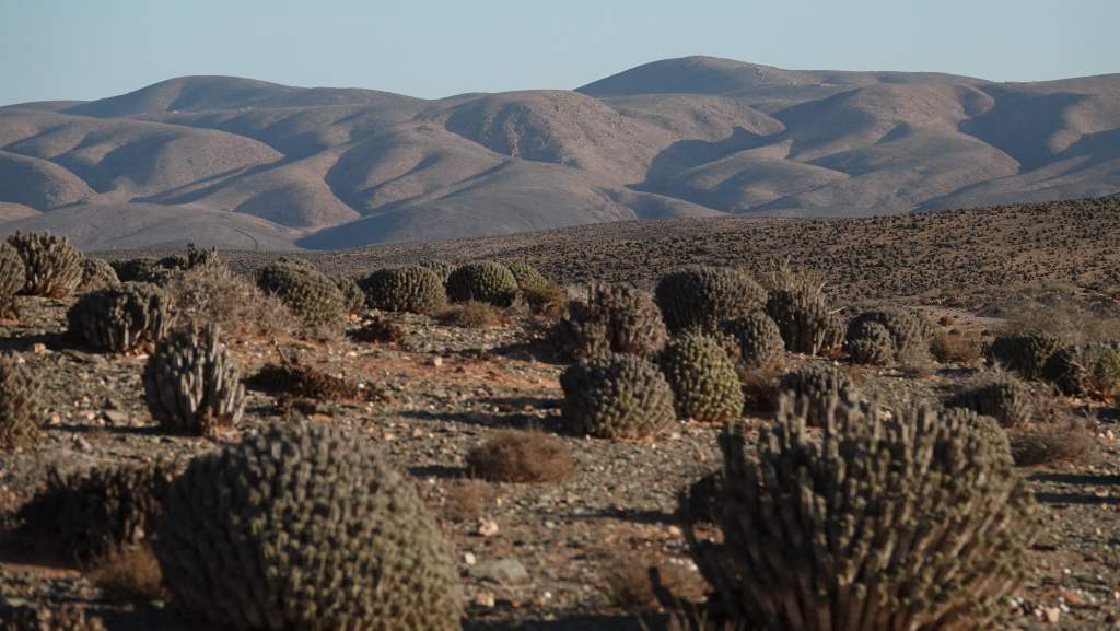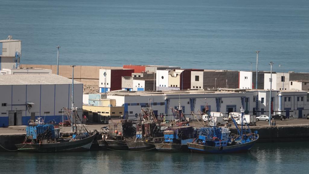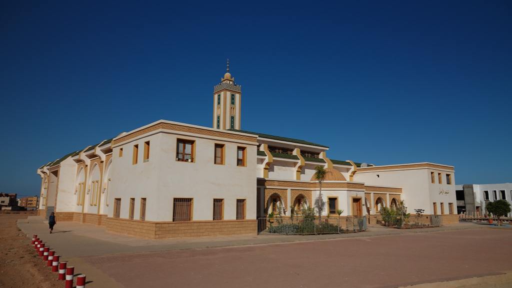 Nous continuons sur l’ancienne N1 qui longe de près la côte sur plusieurs kilomètres pour rejoindre la nouvelle 2×2 voies qui est en cours de construction… On traverse El Ouatia, la station balnéaire de Tan-Tan avant d’entrer dans cette ville administrative sans charme. Nous avons réservé une chambre à l’hôtel MJI Group en plein centre ville : nous logeons dans la chambre « palmier » spacieuse mas froide d’aspect avec carrelages et marbre. Elle est située au rez-de-chaussée et à l’arrière du bâtiment avec une petite cour privative entourée de hauts murs. Nous sommes bien isolés de l’agitation de la ville. Notre voiture restera garée dans la rue…Pour le repas, nous aurions souhaité manger un couscous mais aucun restaurant n’en sert. Finalement, après de longues hésitations, nous jetons notre dévolu sur l’Espace Confort au nom pas très local, mais le plat saucisses nous convient bien. Retour à l’hôtel où le gardien regarde bruyamment et tardivement des vidéos sur son smartphone.