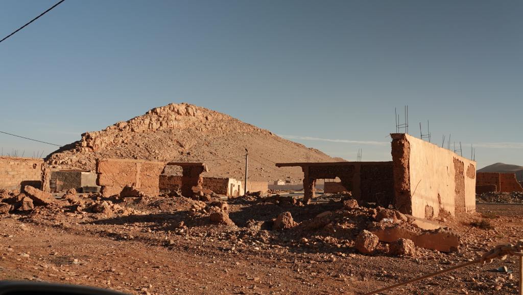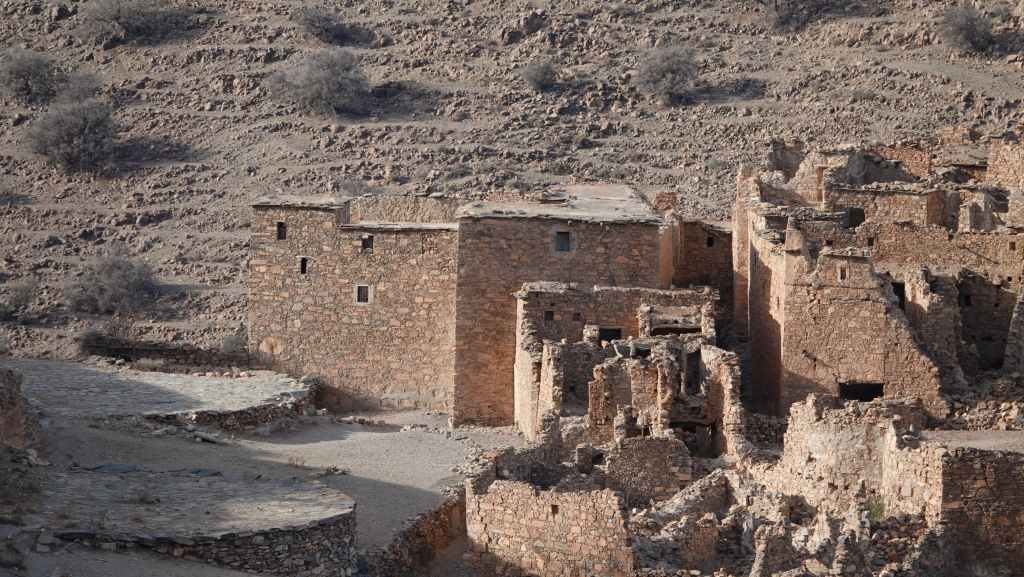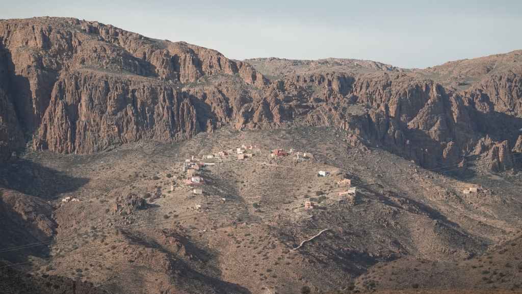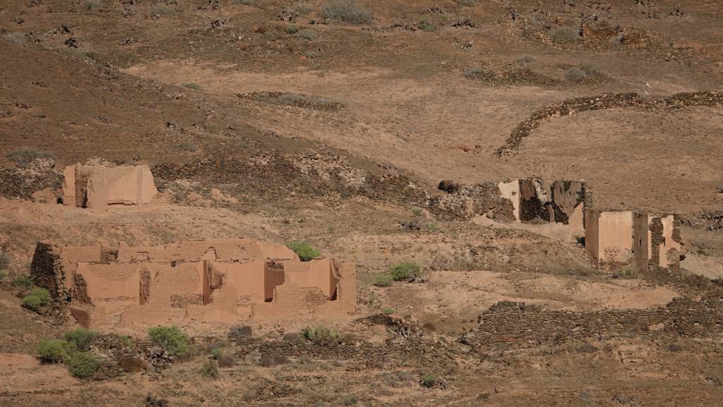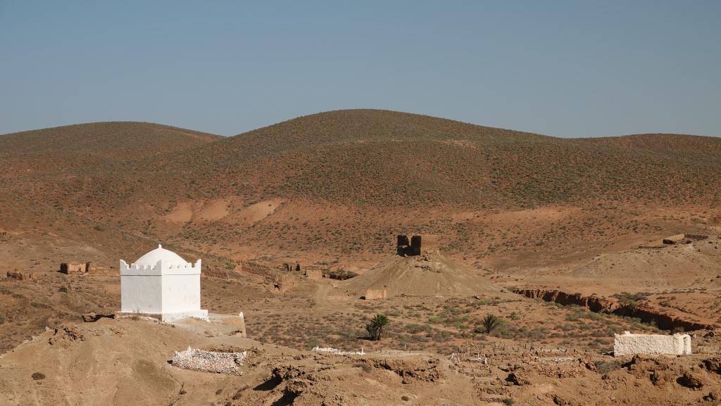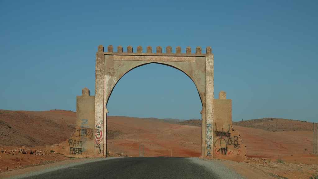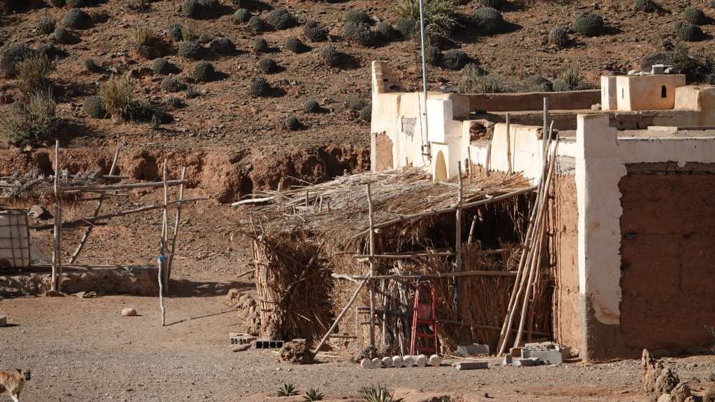 On retrouve tout de même la Kasbah Tizourgane perchée sur sa butte rocheuse et un peu plus loin, on découvre un village en forme de fer à cheval puis les ruines d’un village berbère en contre-bas de la route, sur notre gauche, et bien plus loin un agadir, également sur notre gauche.