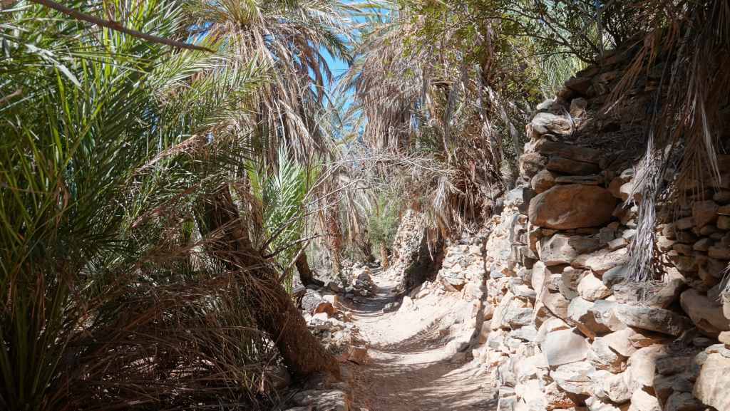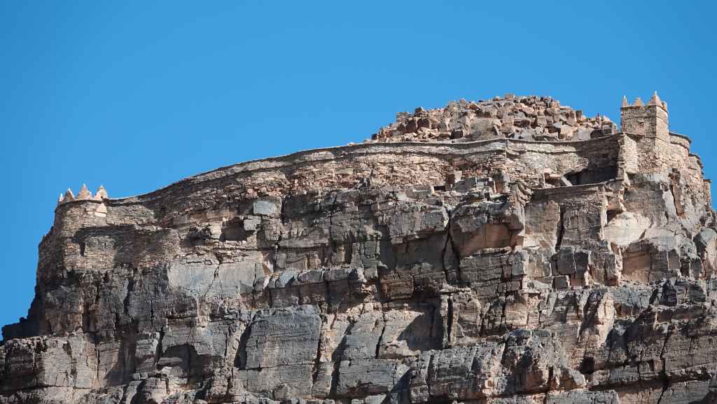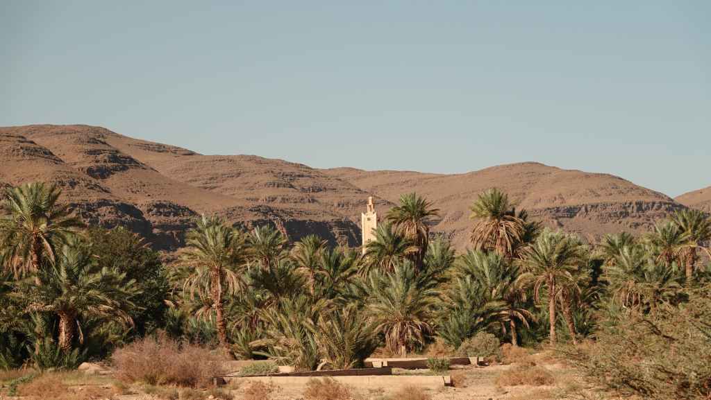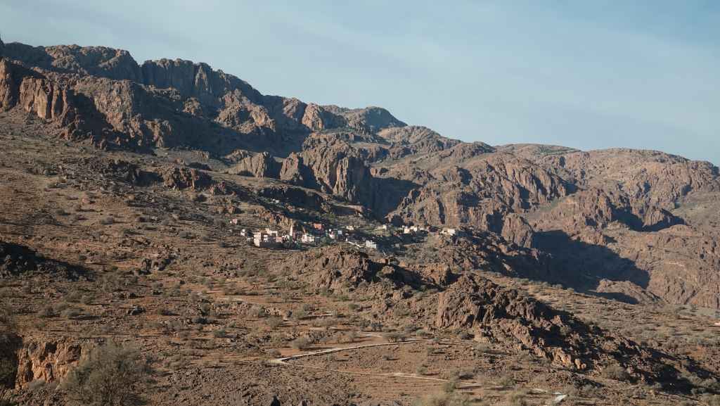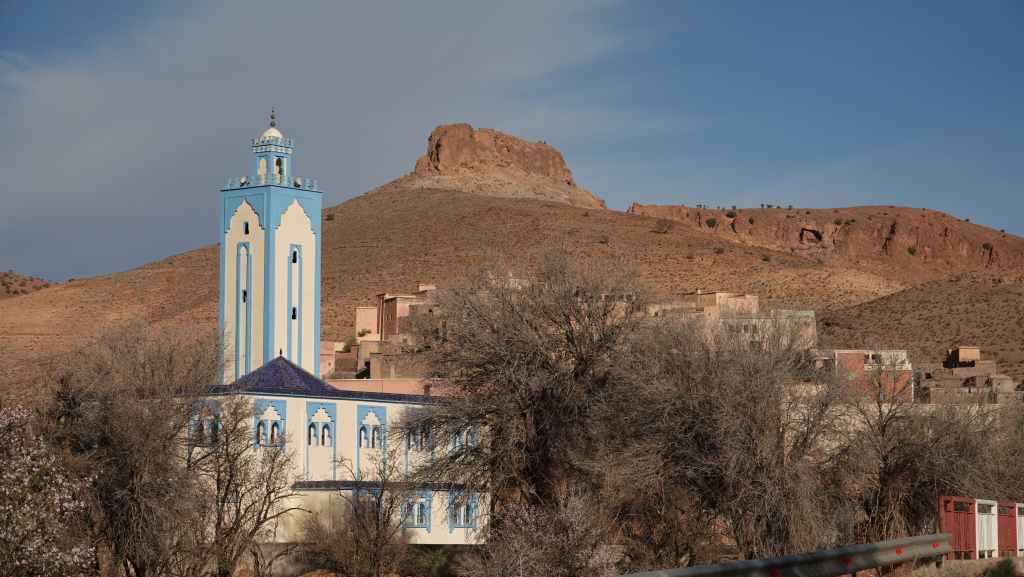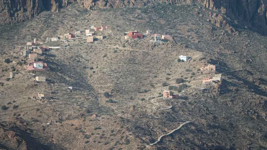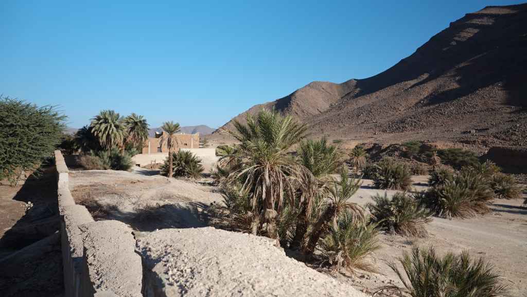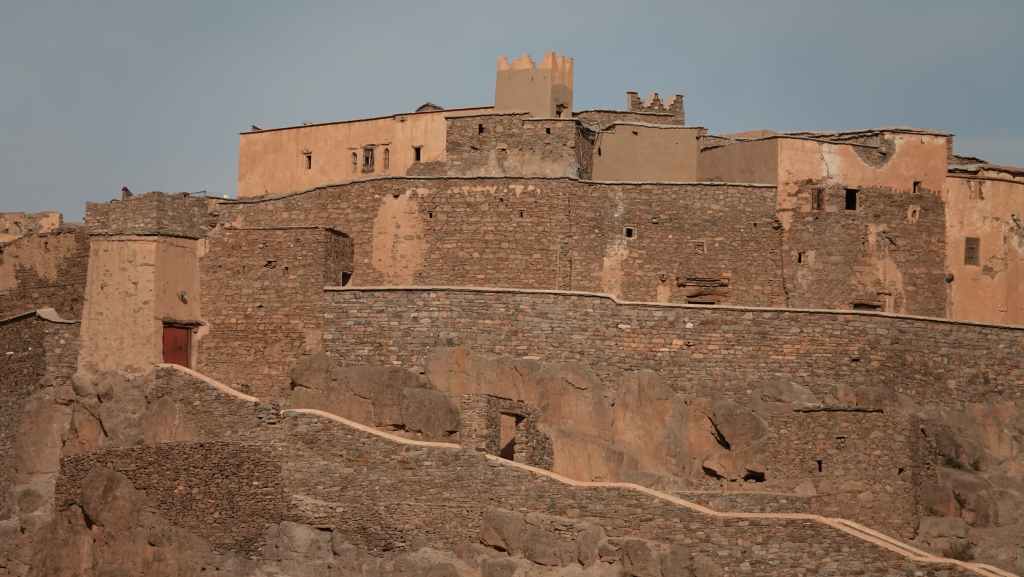 Nous traversons les plantations à l’ombre des palmiers pour remonter au village. En face de nous et sur un piton rocheux, nous apercevons un magnifique agadir : il s’agit d’un « grenier fort communautaire » où les habitants abritaient leurs richesses. Ils s’y réfugiaient également lors d’attaques ennemies. Celui-ci daterait du XIème siècle.