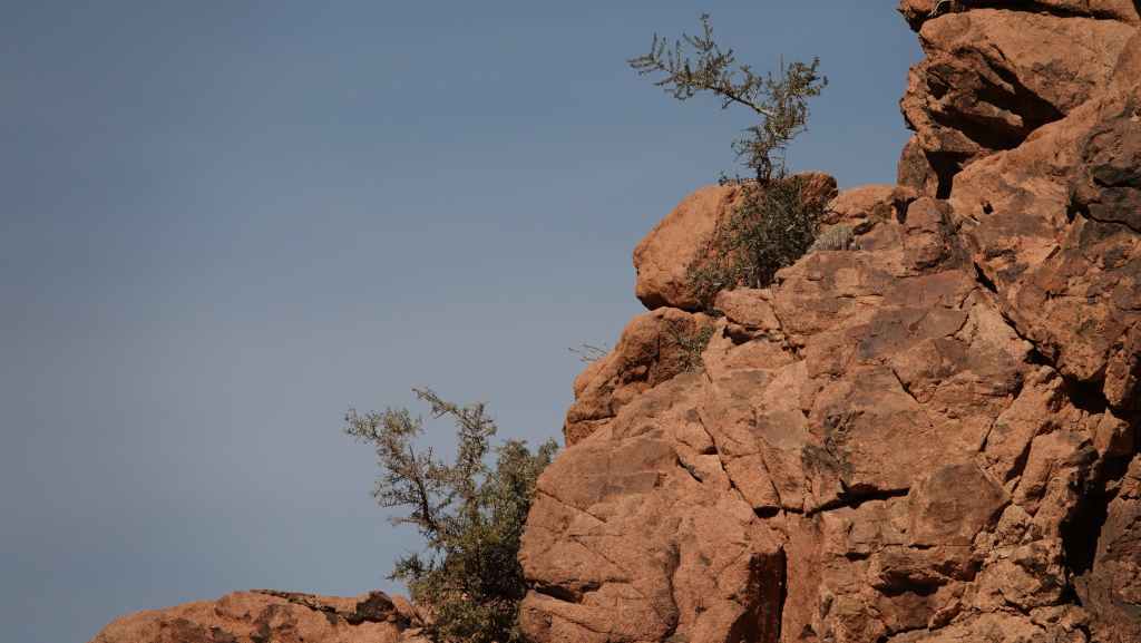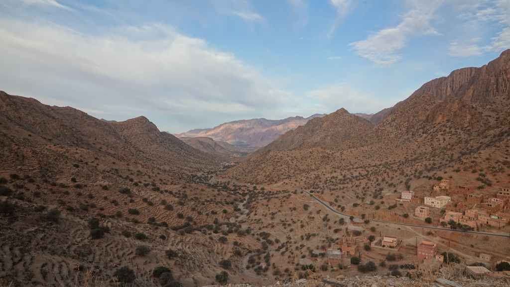 Eh oui, il faut bien une fin alors on reprend une dernière fois notre Duster en direction du nord par la route 105. En 2018, nous avions déjà parcouru cette route dans le sens nord sud et du coup, outre le fait qu’on ne se rappelle pas de tout, on découvre une autre vision de cet itinéraire. On passe d’abord le col Ikhfoufoulou à 1650 m d’altitude (Tafraout est situé à 1000 m), et on redescend sur Tizi Ntarkatine.