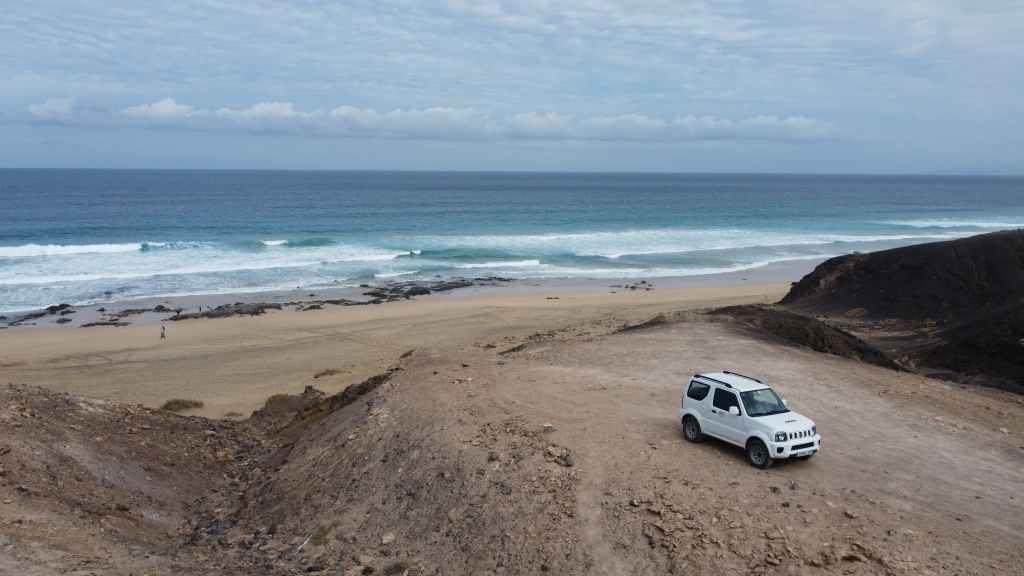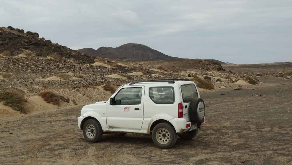 Nous nous rendons sur le port de Morro Jable chez Soto. Nous abandonnons le CC dans une rue proche du garage, mais à notre arrivée, nous ne sommes pas à l’agence de location. Après s’être assurée de la disponibilité d’un Suzuki Jimny, la jeune femme nous fait monter dans sa voiture et nous emmène à quelques kilomètres de là, à l’agence située dans la vieille ville. C’est vraiment très sympa de sa part ! Nous prenons possession de notre nouveau véhicule et repartons en direction de la piste.