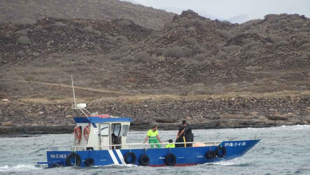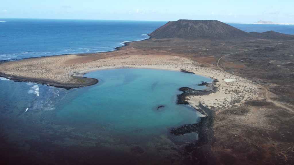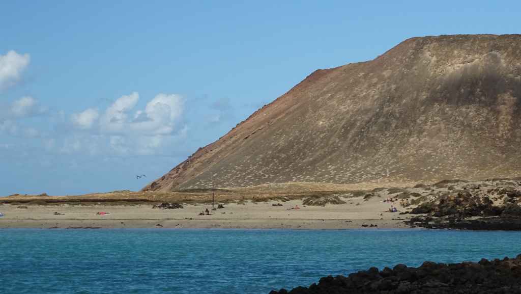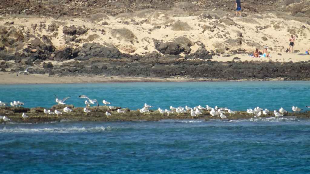 La météo est excellente à notre arrivée après 20 mn de traversée. Nous partons en direction de la plage de la Concha de Los Lobos, en forme de coquille St Jacques et aux eaux turquoises.