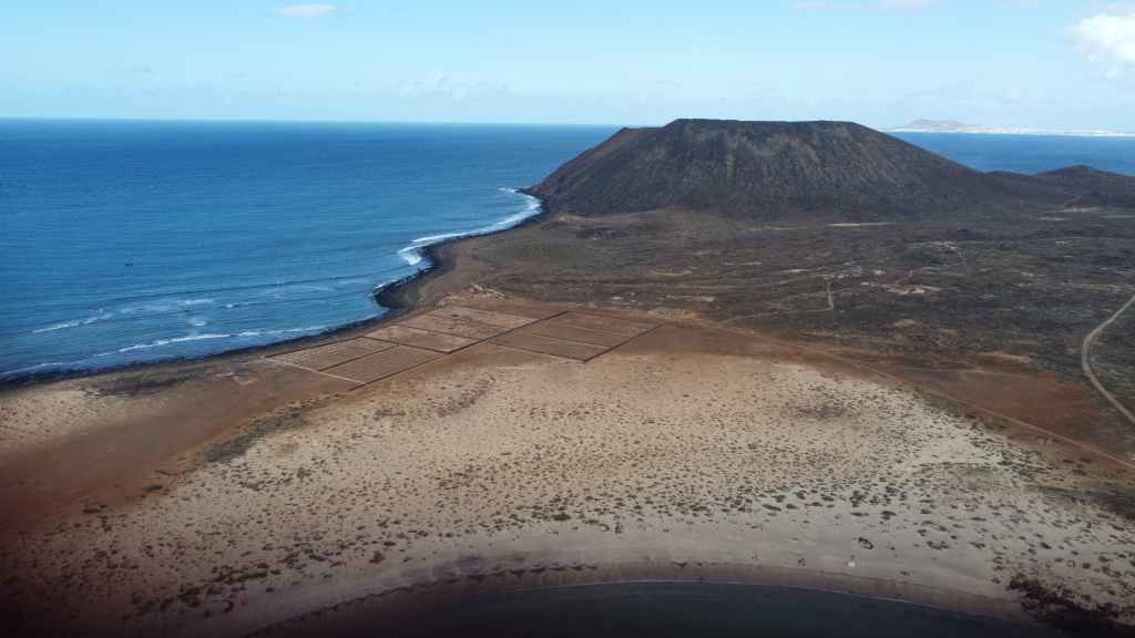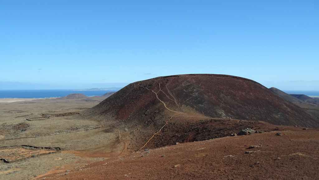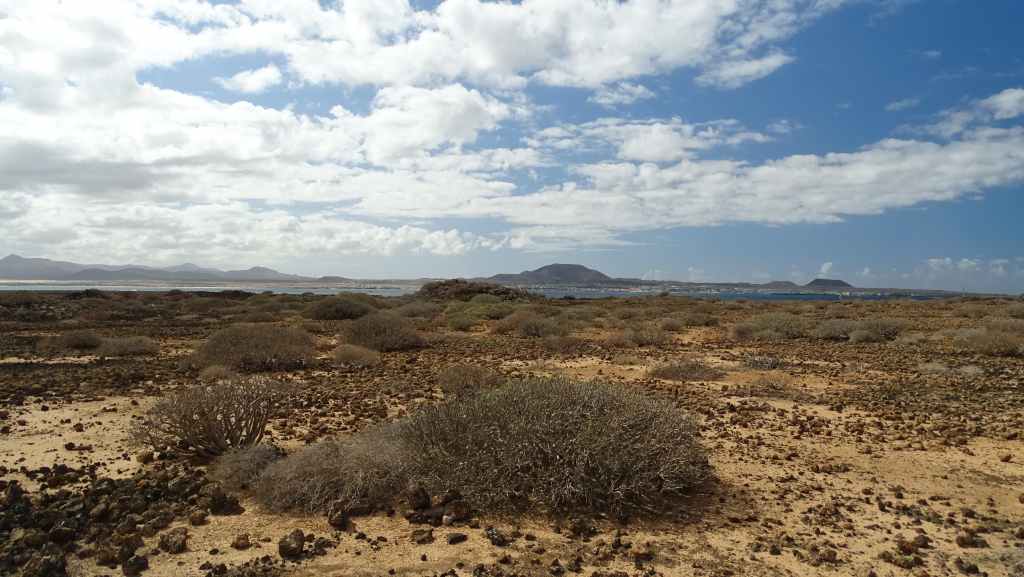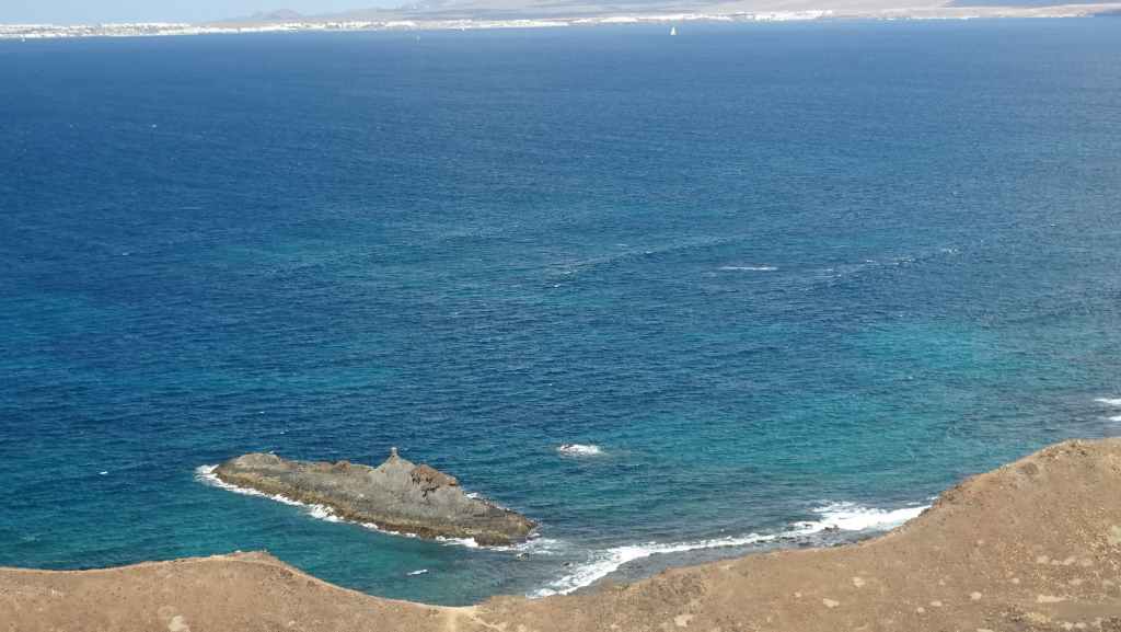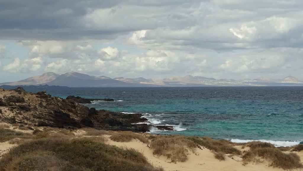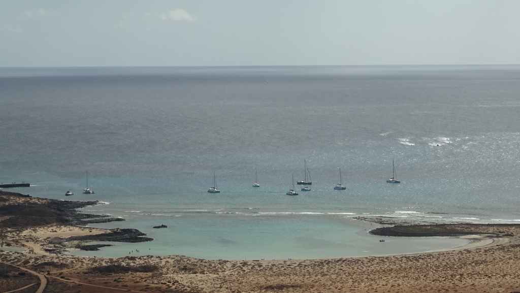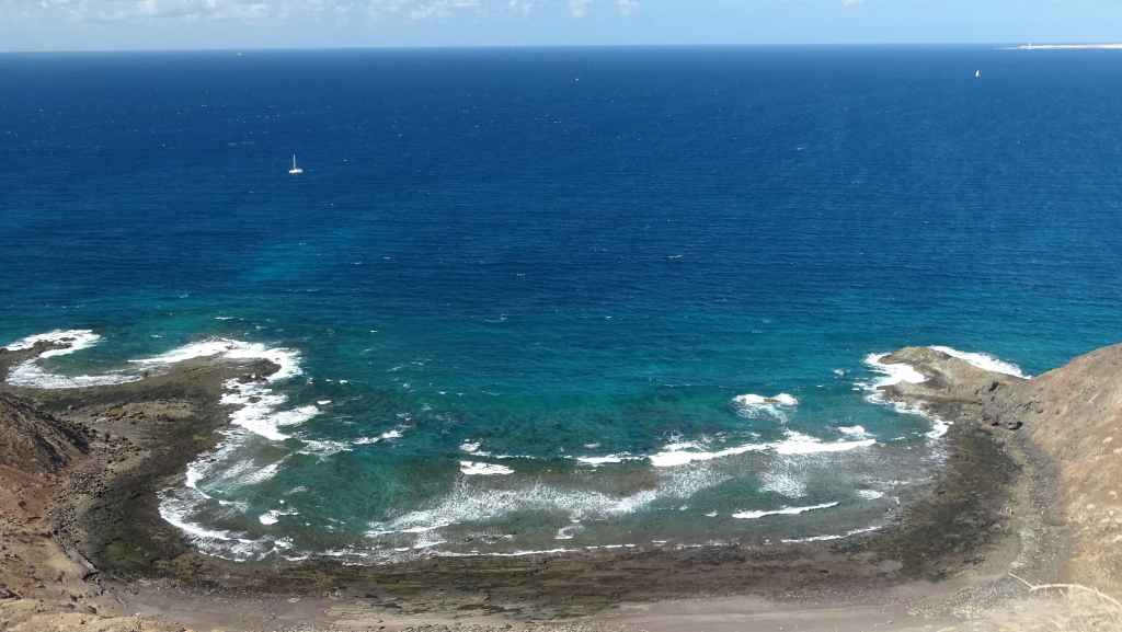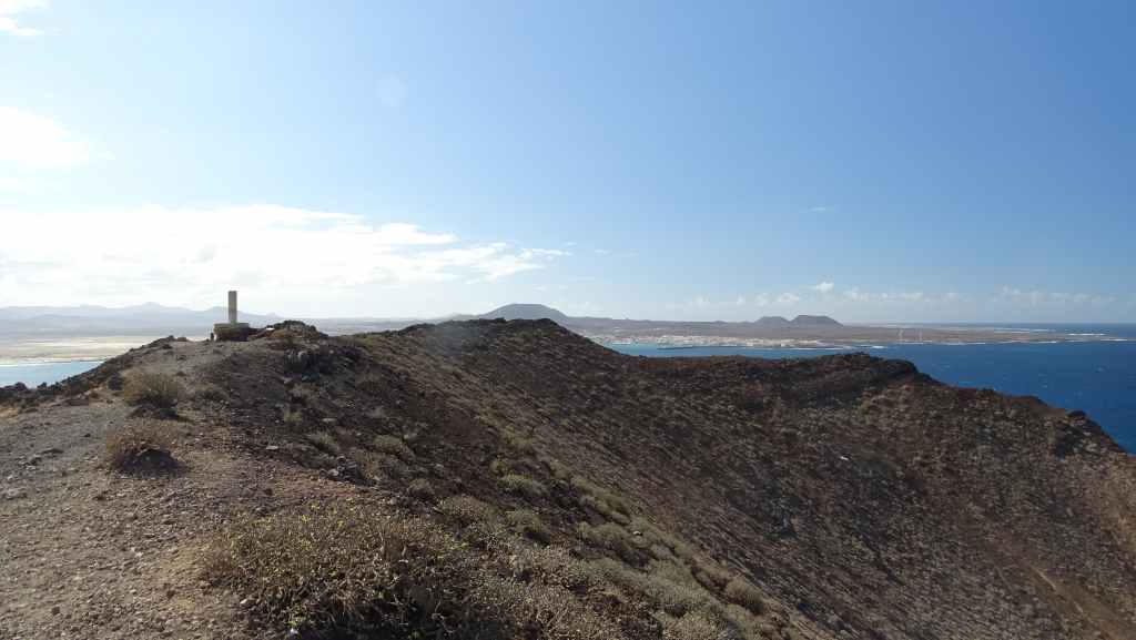 Nous y déjeunons avant de partir « escalader » le sommet de l’île, la montagne de la Caldera, qui culmine tout de même à 124 m au-dessus du niveau de la mer. L’altitude est modeste mais la vue sur les iles de Fuerteventura et Lanzarote est superbe. On aperçoit aussi le phare da la Punta Martiño au nord de Los Lobos. Nous ne sommes restés volontairement que 3 heures mais c’est trop juste…
