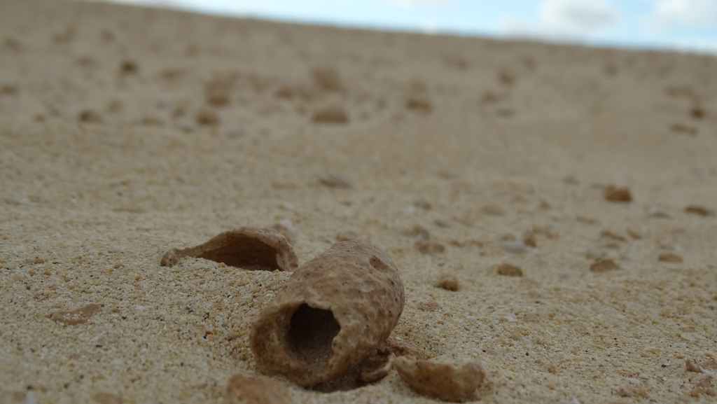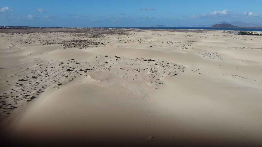 On y découvre les fossiles de nids d’abeilles maçonnes, en forme de petits œufs ovoïdes creux, datant de plusieurs milliers d’années. Ce petit désert a une surface d’environ 18 km2. Puis nous allons de nouveau à Corralejo sur un parking près de la mer, mais aussi près d’une route finalement très bruyante pendant la nuit.
