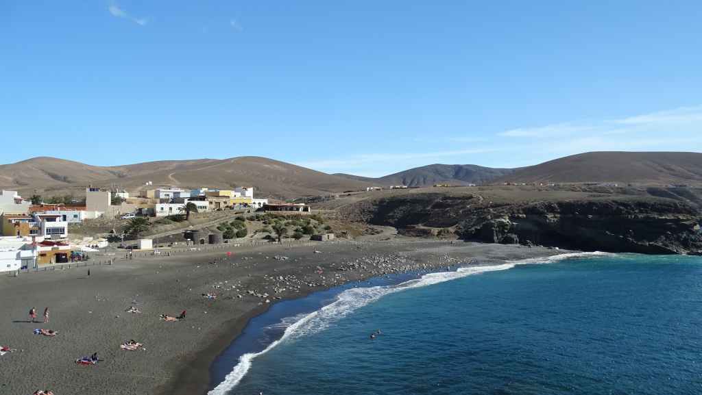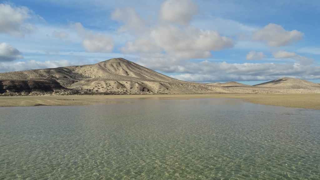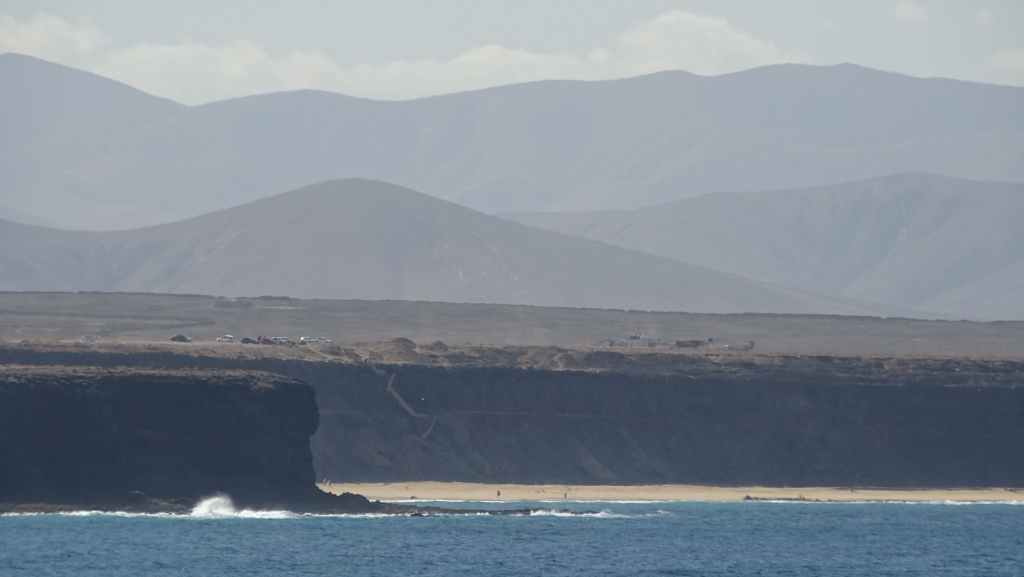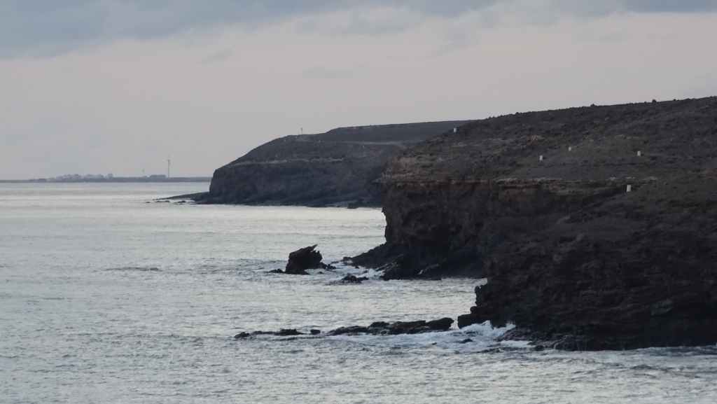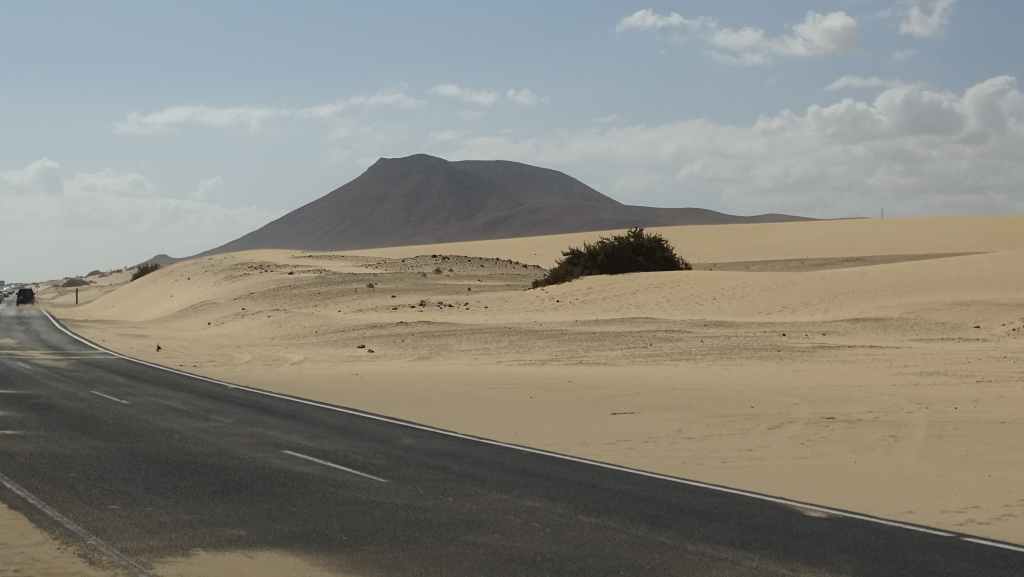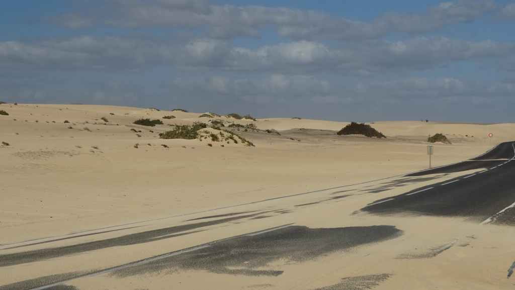 Puis il temps de repartir vers l’est de l’île, en direction des grandes plages réputées. Mais avant, il nous faut aller vidanger nos eaux grises et noires. Nous trouvons ce qu’il nous faut à La Lajita, non loin de la ville de Tarajalejo. Nous rebroussons chemin pour nous installer sur la plage de Puerto Rico, afin de prendre notre déjeuner. Après le repas, nous reprenons l’autoroute FV-2 en contournant Costa Calma.