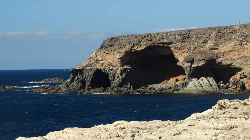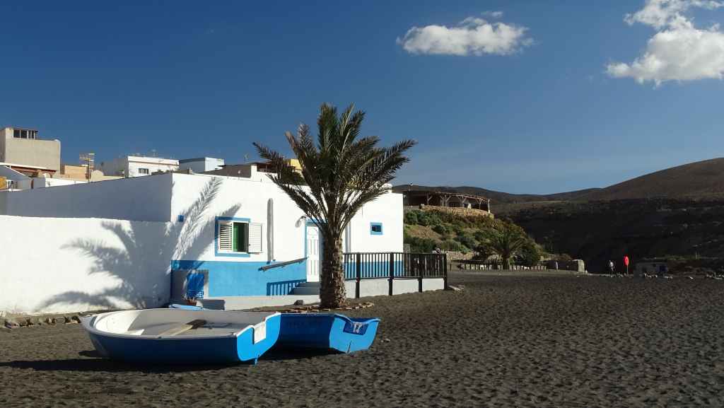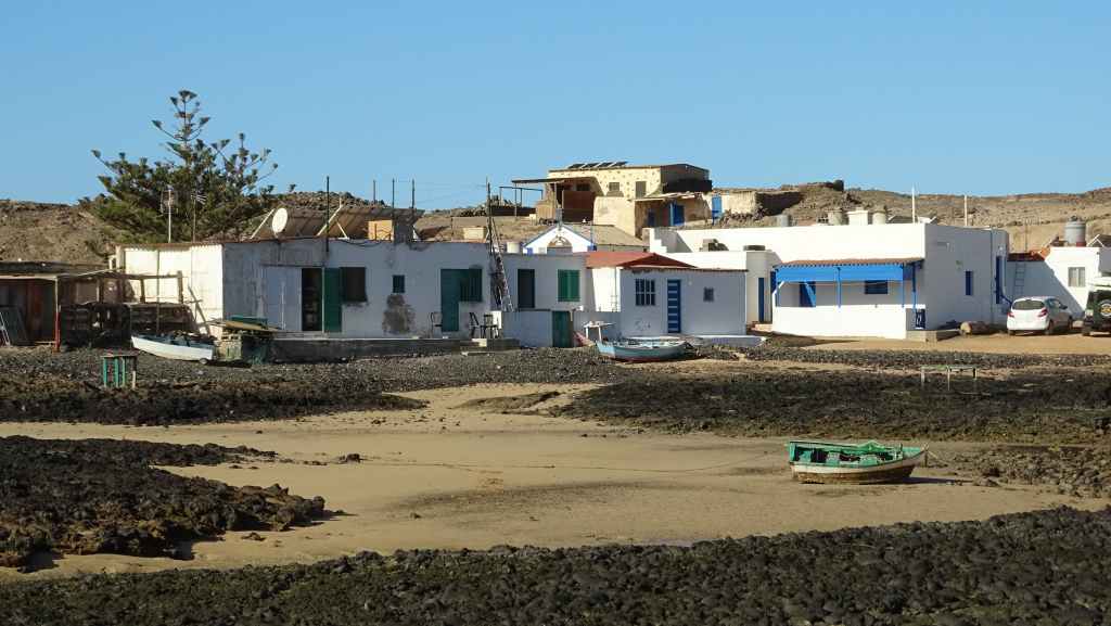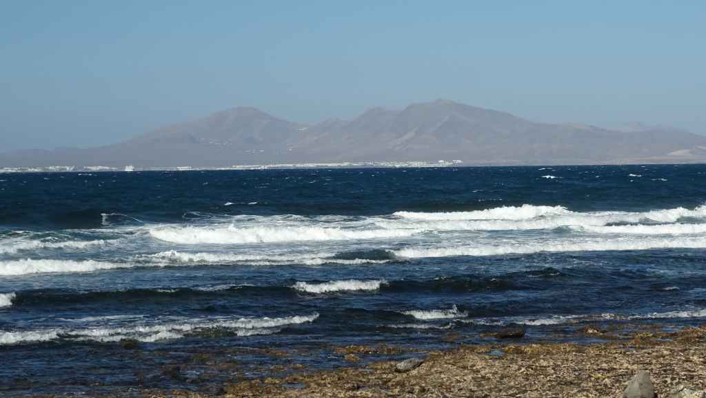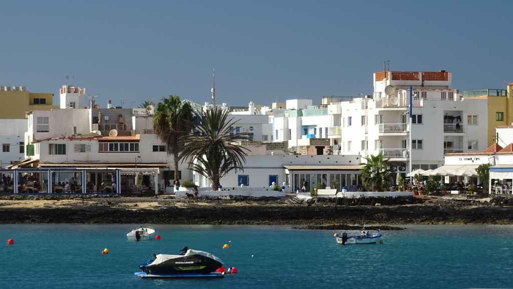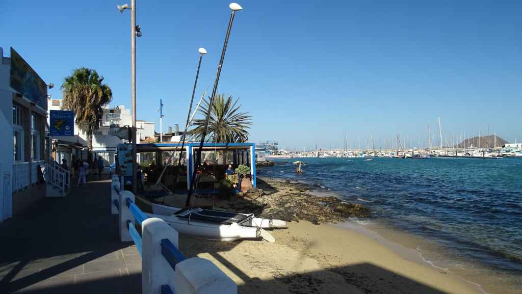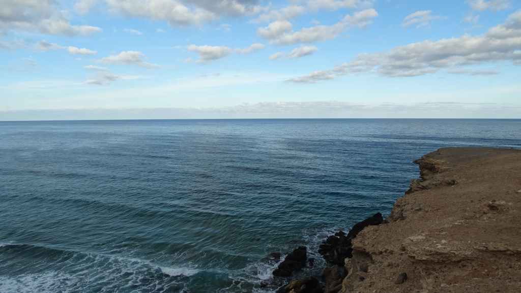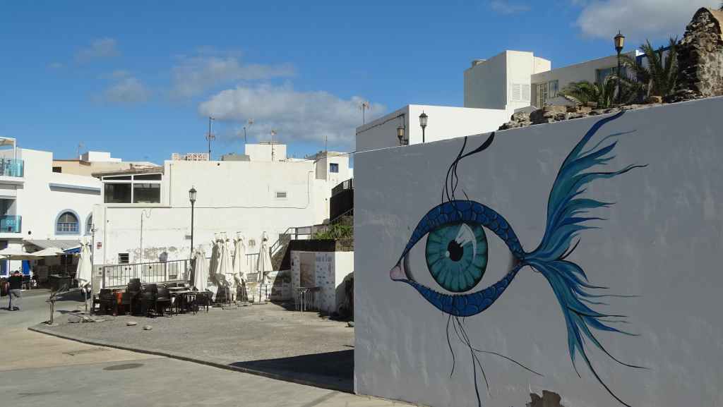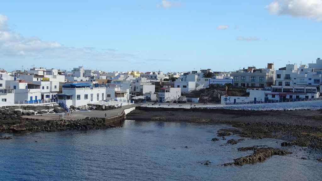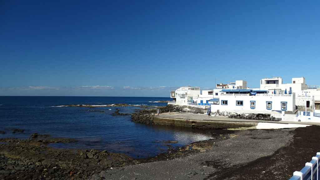 Après une visite du tout petit port de pêche de Majanicho, nous descendons sur Lajares puis partons visiter El cotillo sur la façade ouest de l’île. C’est une petite ville touristique très sympathique et après avoir arpenté les rues, nous patientons 1 heure sur un banc, en attendant l’ouverture des restaurants à 13h00. Nous avons une envie de poisson grillé et c’est au restaurant La Vaca Azul que nous nous régalons.