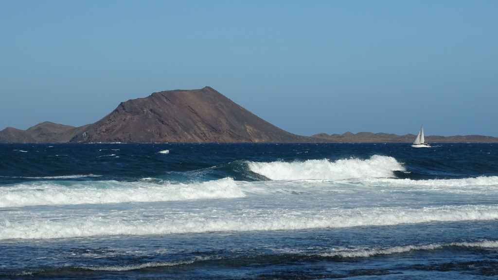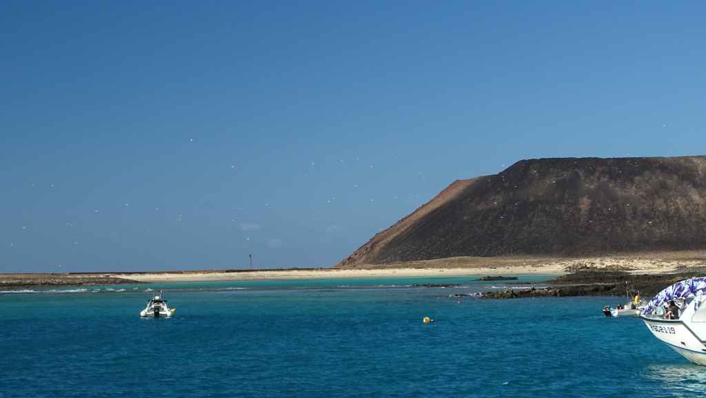 La veille, nous avions réservé un aller-retour en bateau vers l’île de Los Lobos (Les loups en espagnol, les loups de mer évidemment, variété de phoque et qui ont disparus). Nous embarquons donc sur le bateau de la compagnie Ferry Isla de Lobos (https://ferryisladelobos.com/?lang=fr). On peut demander depuis leur site internet l’autorisation de visiter l’île puisque celle-ci est protégée et le nombre de visiteurs limité.