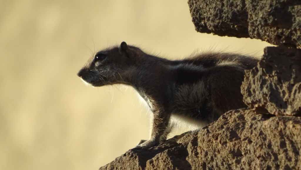 Nous redescendons sur La Oliva où nous nous arrêtons à « la casa de los Coroneles », la maison des colonels qui abritait les gouverneurs militaires du temps où La Oliva était la capitale de l’île. Le bâtiment étant fermé, nous en faisons le tour et trouvons un « nid » d’écureuils bien curieux et surtout affamés !