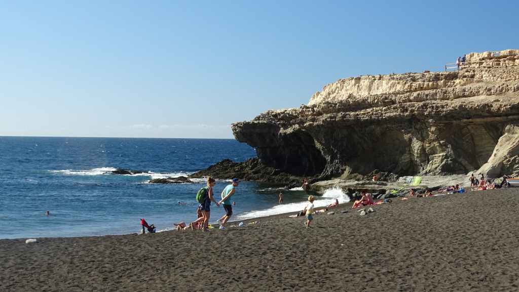 Nous reprenons la route, de plus en plus belle, au milieu de gorges et de cols qui nous rappellent le sud marocain. Le midi, nous nous posons près d’une petite palmeraie avant de continuer vers Ajuy, afin de visiter les grottes côtières de Caleta Negra. Un sentier très fréquenté part de la plage de sable noir pour rejoindre de gigantesques cavernes situées en bord d’océan.