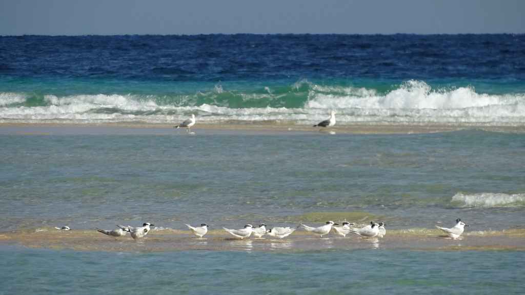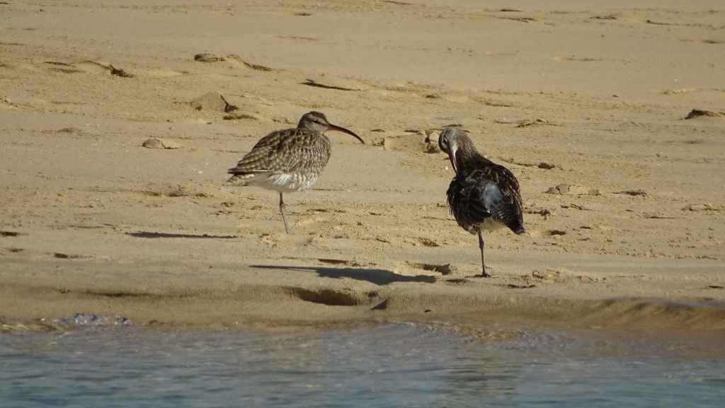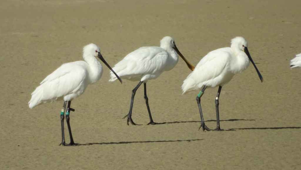 Il y a peu de monde sur cette gigantesque plage et dès que l’on s’éloigne du parking, les oiseaux colonisent le sable : grande aigrette, héron cendré, sternes, goélands, gravelots, courlis et spatules. Très beau spectacle !