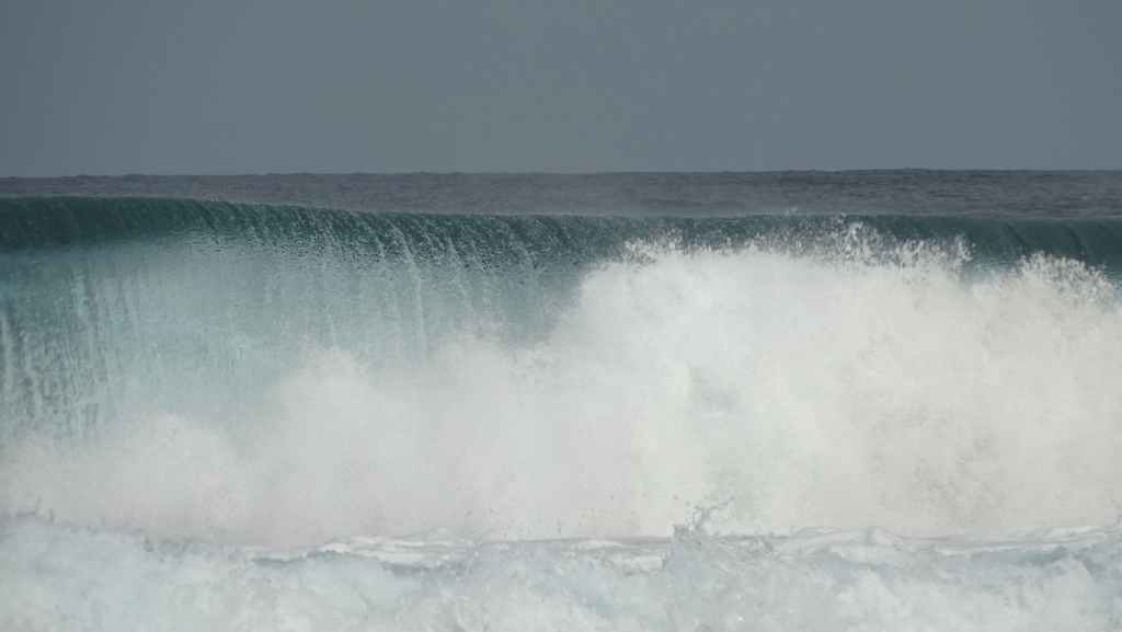 Avant de repartir, nous prenons le temps d’aller nous balader en contre-bas sur la plage où de nombreux surfeurs viennent apprendre, s’entrainer ou s’amuser dans les vagues.