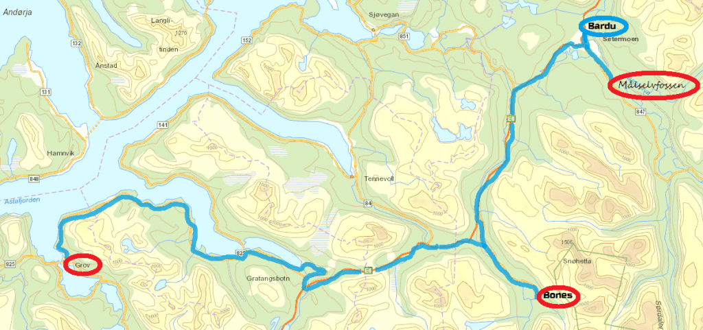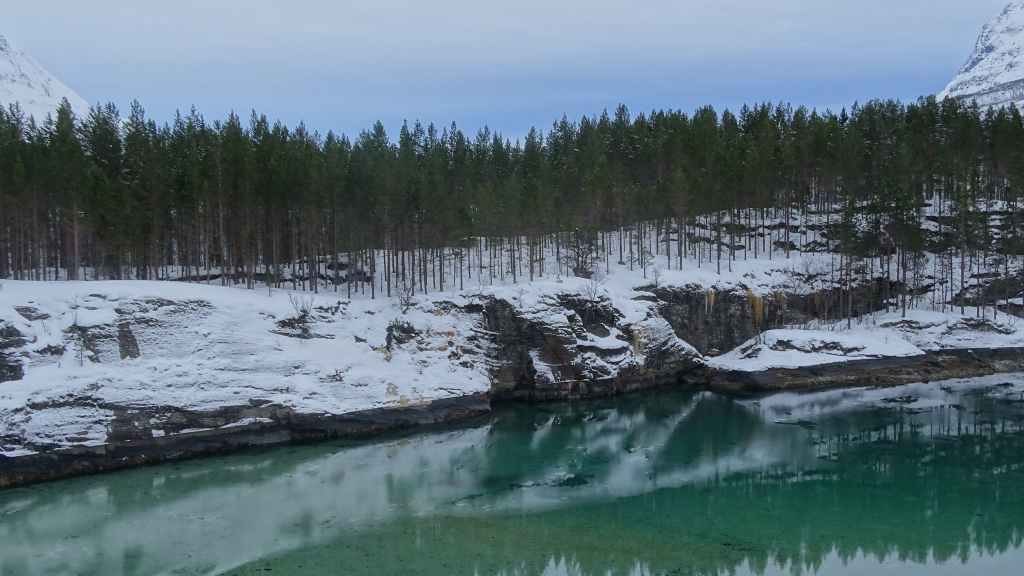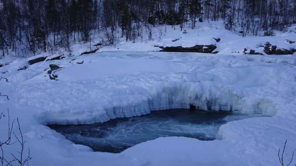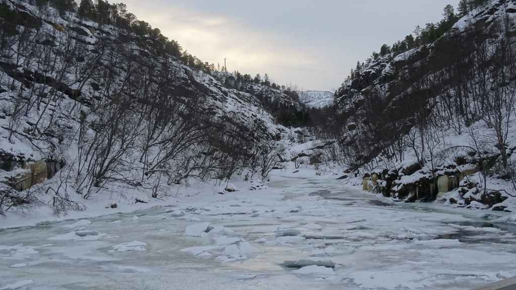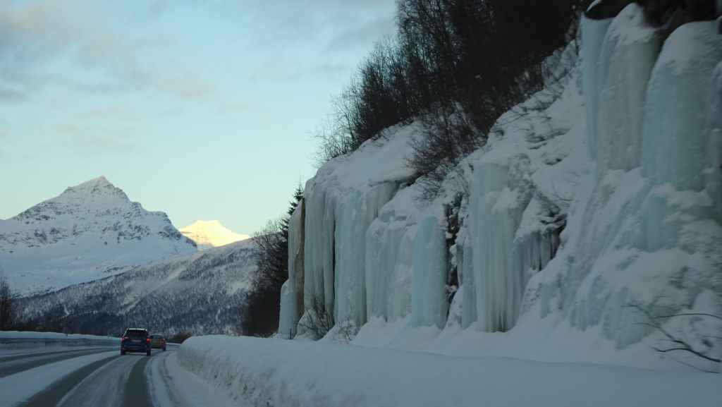 Vers 13h30, on quitte Bones pour rejoindre les chutes Malselvfossen presque totalement gelées. Elles doivent être plus impressionnantes à la fonte des neiges mais la petite balade est sympa. Le retour se fait par Bardu et ses quelques magasins.