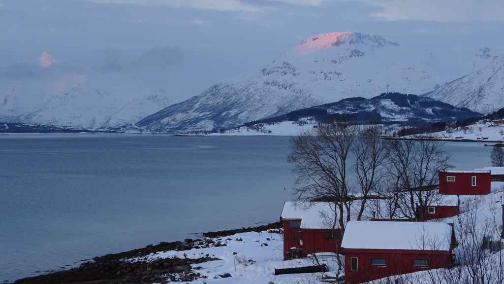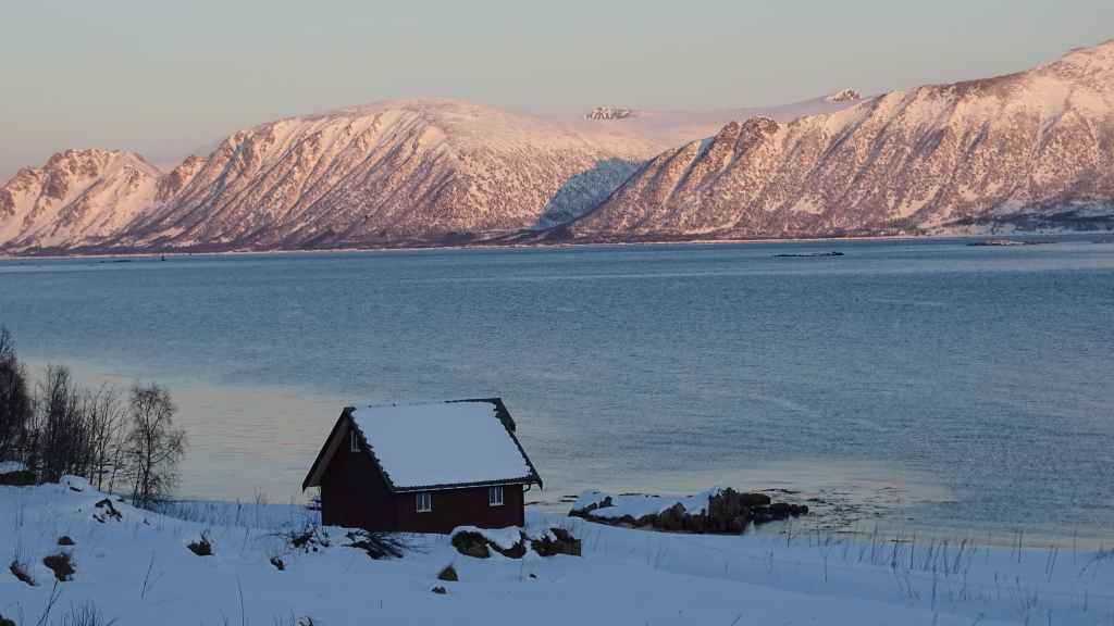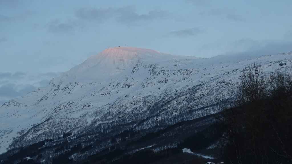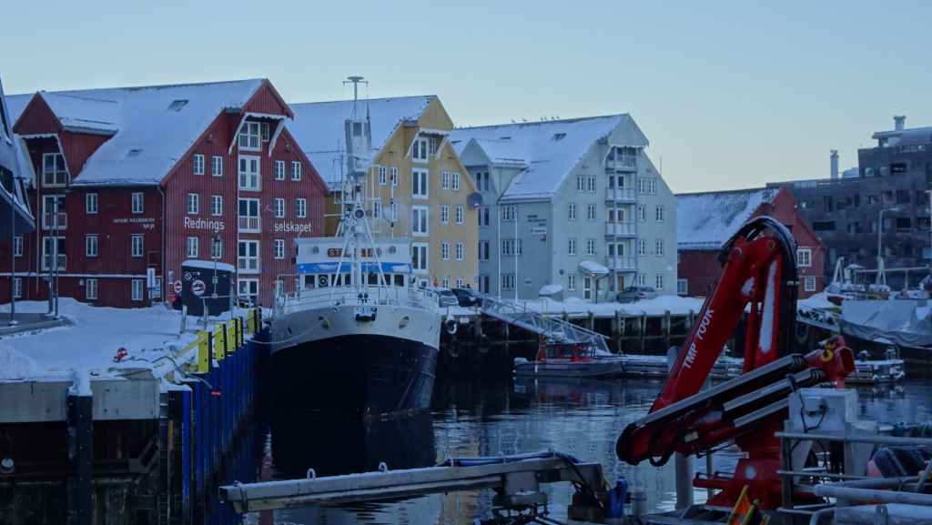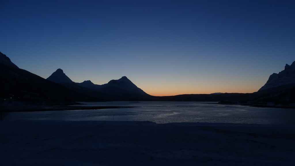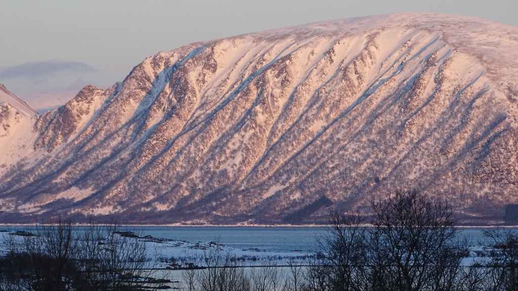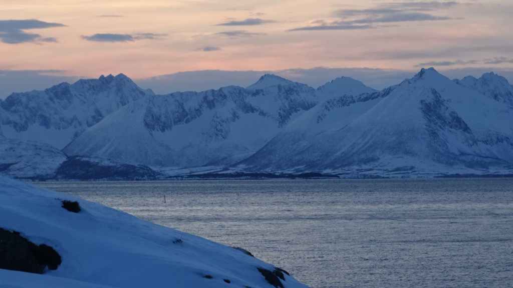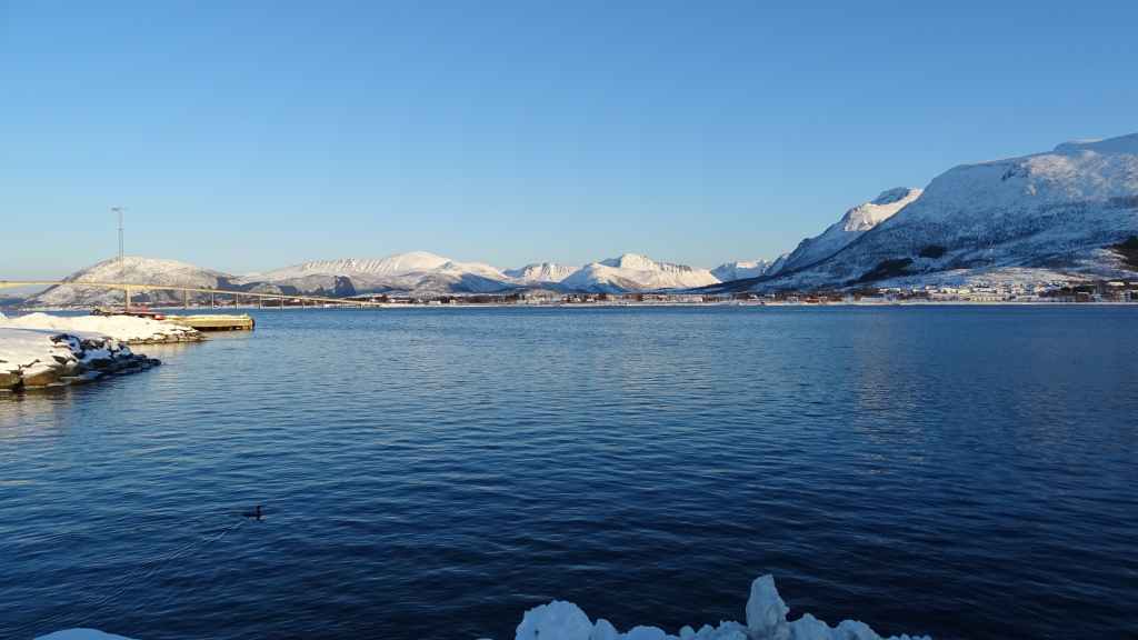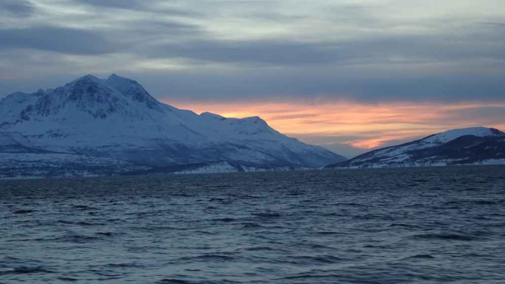 Notre avion décolle cet après-midi à 14h05, mais vu le temps mis à l’aller et que l’on veut faire un petit tour dans Tromsø, nous quittons notre appartement à 7h00, heure où les premières lueurs du jour apparaissent au bout du fjord…