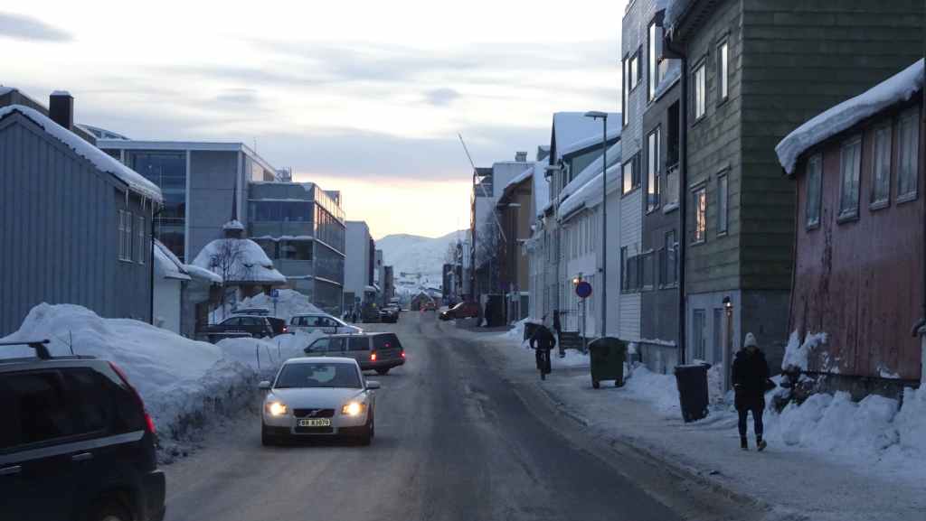 A 11h45, on traverse la colline de Tromsø par le réseau de tunnels : il y a des carrefours et même un rond-point sous-terrain : on doit rendre la voiture vers 12h00. Sur le parking, un couple de français « gueule » après leurs 2 gamins qui n’en font qu’à leur tête. Les parents sont énervés car ils ne trouvent pas leur voiture de location. Après 1 semaine de grand calme, même en ville, ce sont des français que l’on entend le plus !