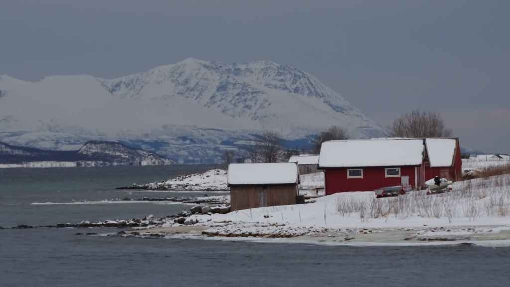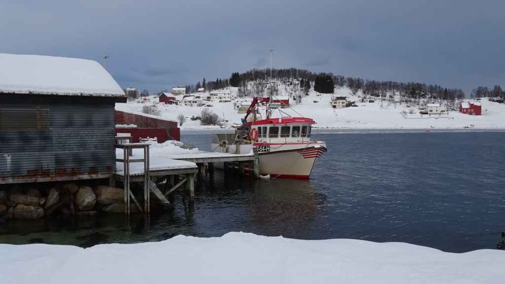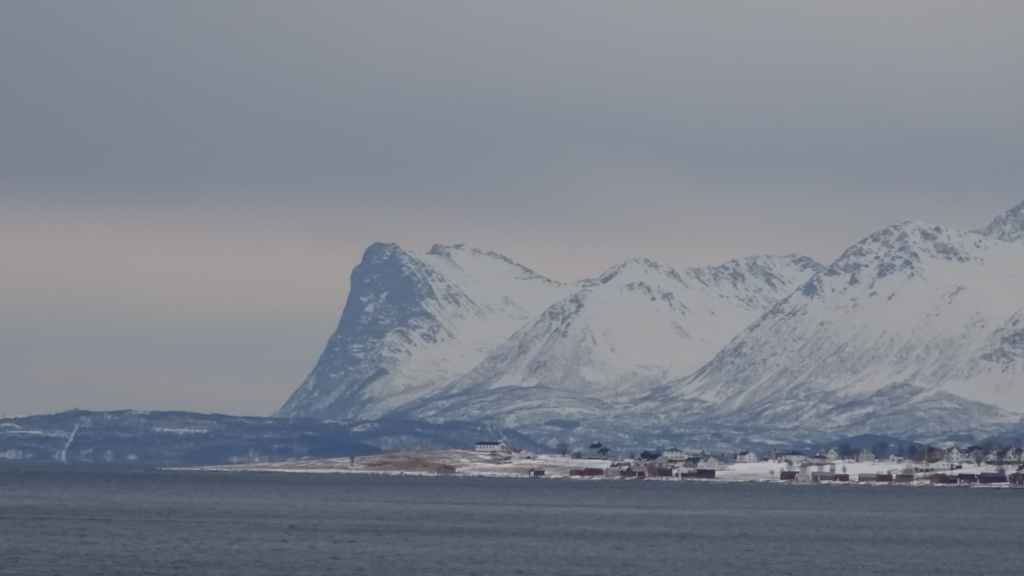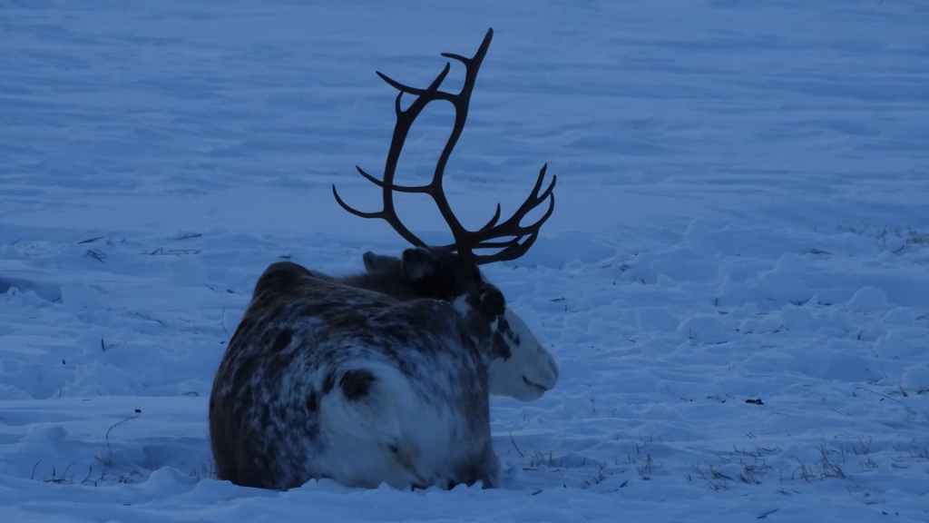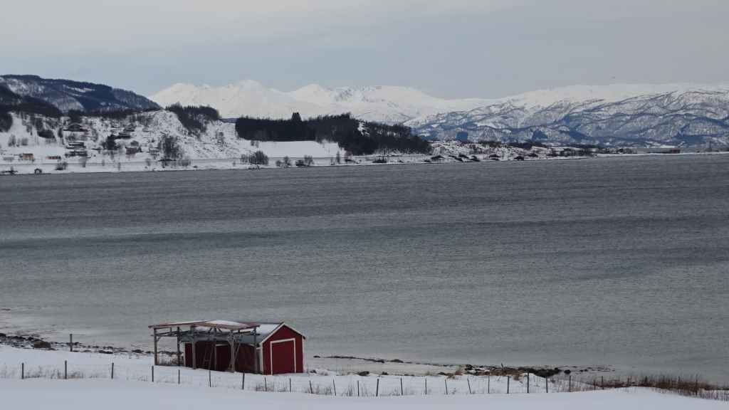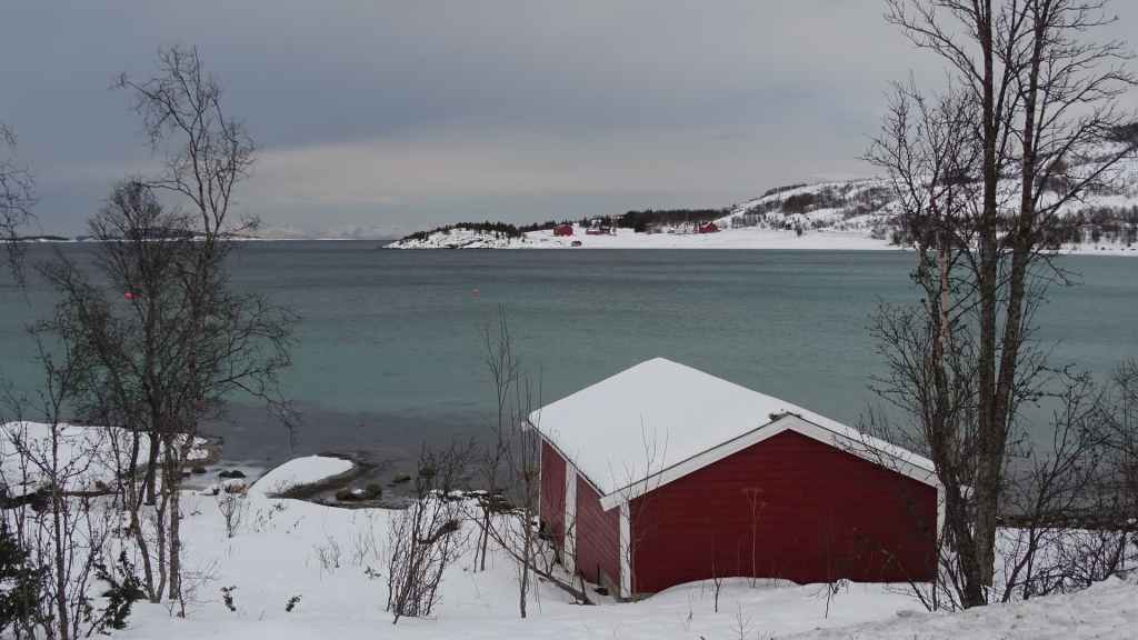 Après le repas, nous reprenons la voiture pour rejoindre le tout petit village de Elgsnes, situé sur une langue de terre à 22 km au NO de la ville. Petite promenade dans la neige pour admirer les paysages de fjord : superbe ! Nous apercevons un couple d’aigles pêcheurs et quelques rennes allongés dans la neige.
