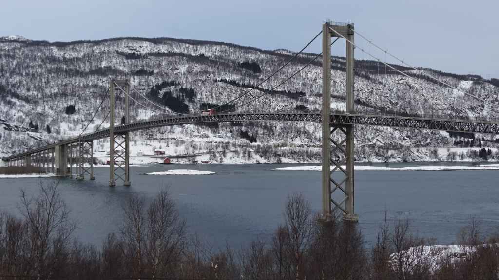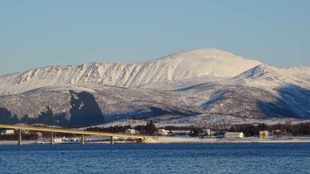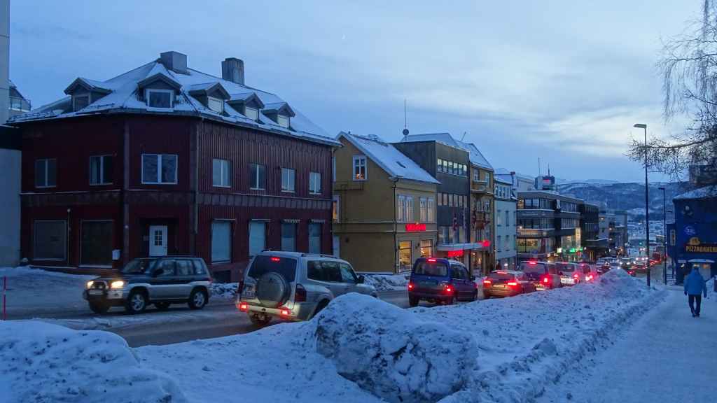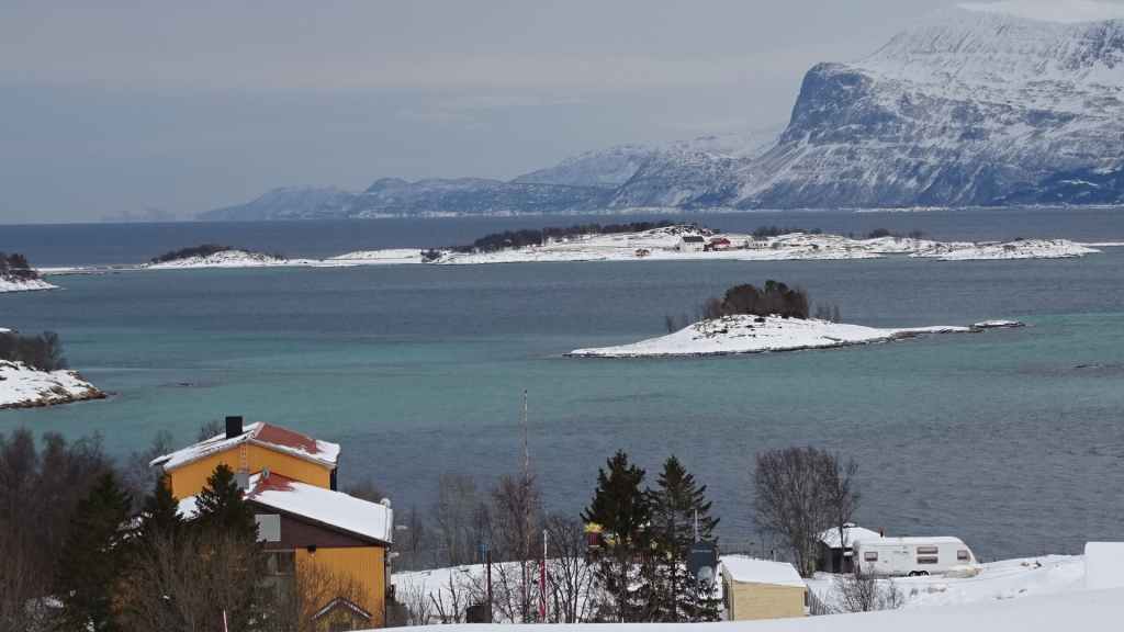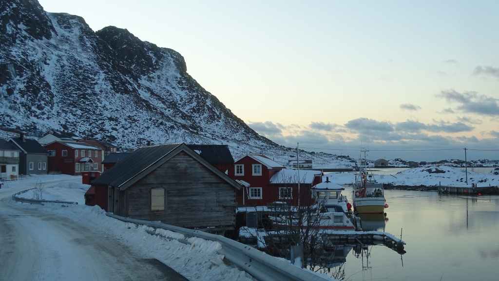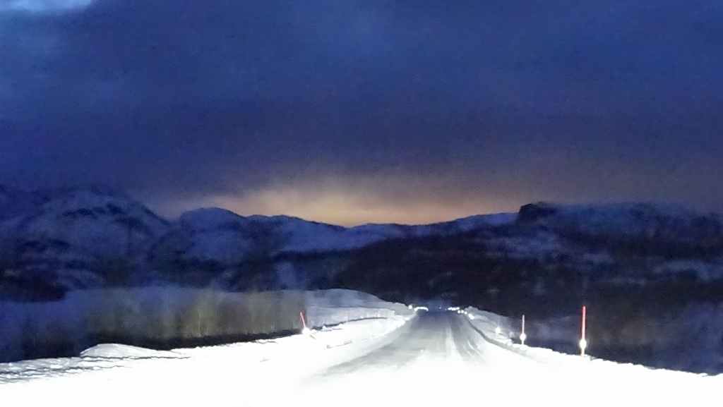 Retour de nuit, vers 17h30 à Grov. En Norvège, il faut savoir que l’accès à beaucoup de villes est payant, à l’entrée comme à la sortie ! Ici, environ 2,60 € A/R. Narvik, c’est 8,40 € A/R mais Tromsø est gratuit. D’autre part, certains viaducs ou tunnels sont également payants mais dès que leur coût de construction est remboursé, les accès deviennent gratuits…
