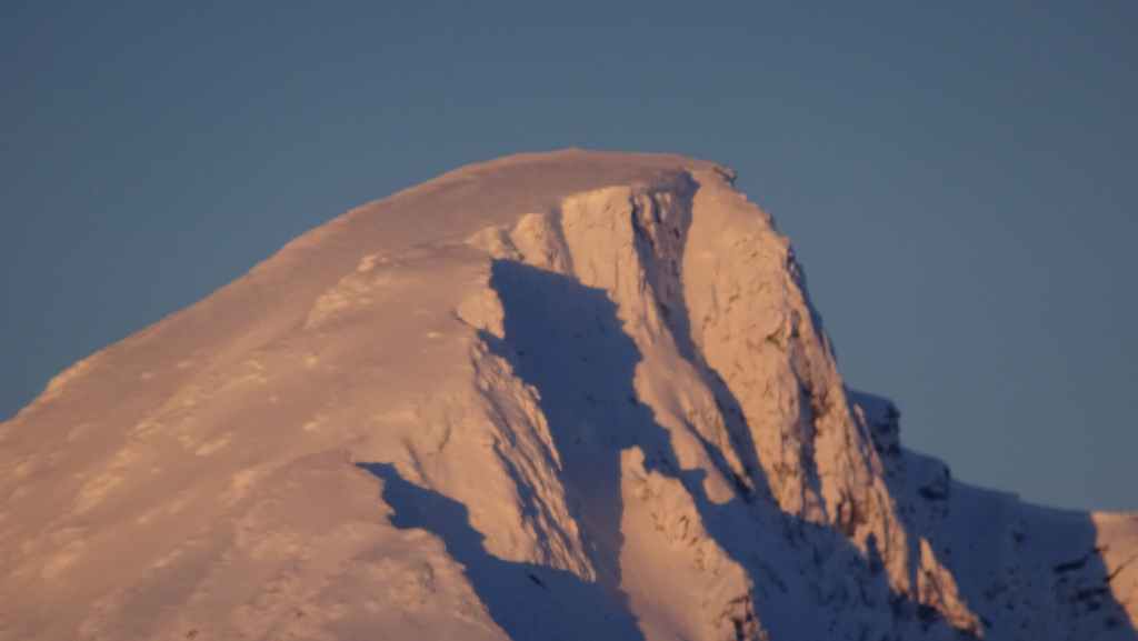 La météo est excellente et au fur et à mesure que le jour se lève, les sommets de neige se détachent sur un ciel bleu profond. La route est moins verglacée que samedi dernier et du coup on met 1 heure de moins pour arriver en ville.