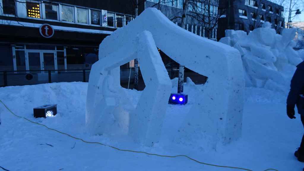Puis on va ce garer au centre-ville. A peine descendu de la voiture, on entend des haut-parleurs qui annoncent une fête. Il s’agit d’une fête Sami (premiers habitants de Laponie) avec un jeu qui se met en place.