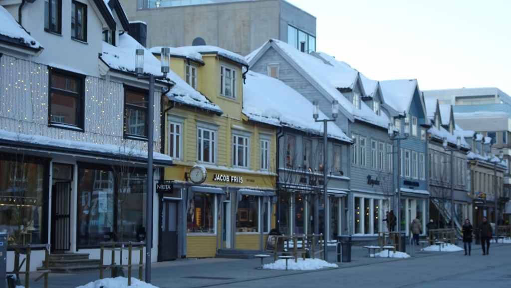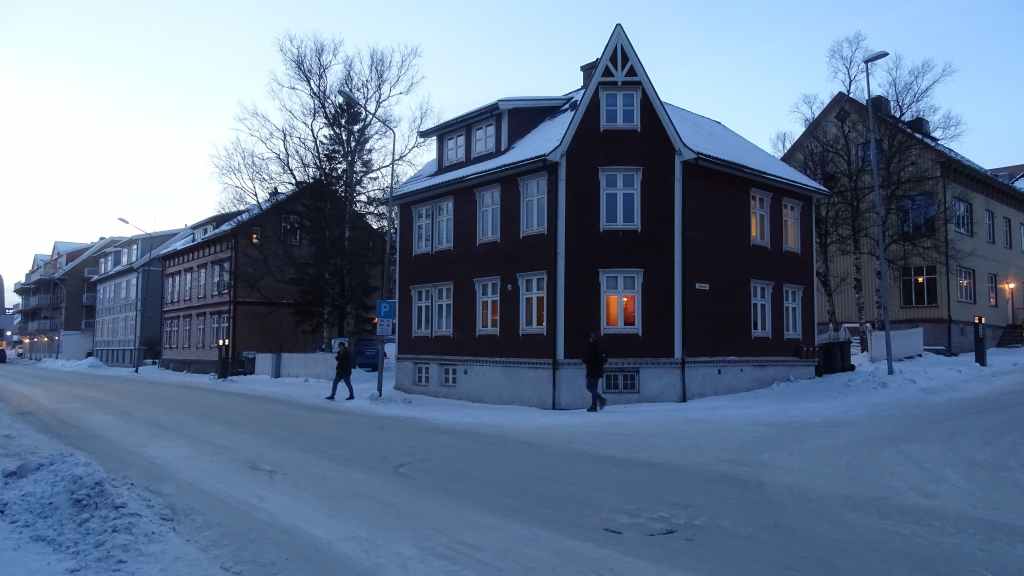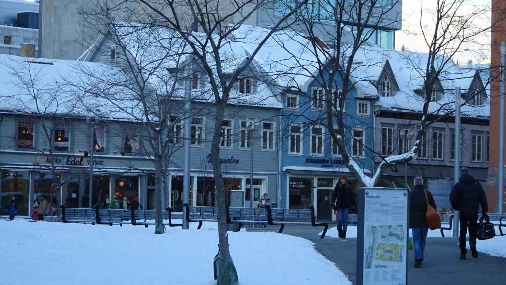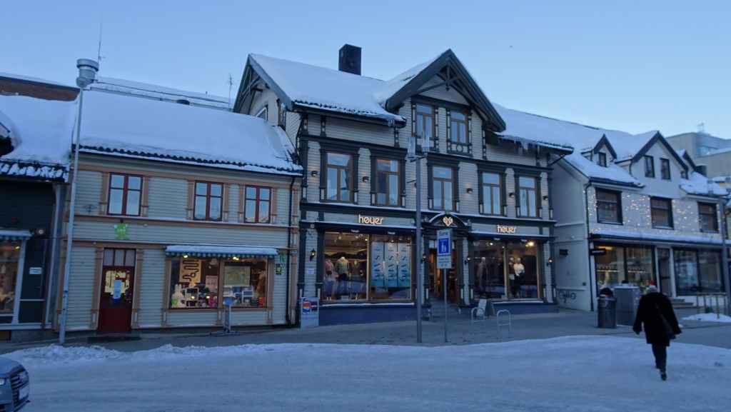 On déambule 1 heure dans les rues où trônent de vieilles maisons de bois colorées. Il y a beaucoup de boutiques à touristes car le Hurtigruten et de nombreux navires de croisière font escale à Tromsø. D’ailleurs, on entend pour la première fois, des gens parler français…