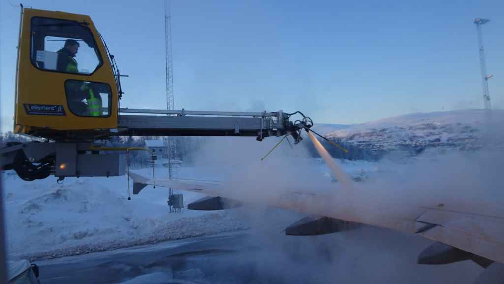 Le retour de la voiture est très rapide. Les contrôles à l’aéroport aussi. 14h05, on est toujours sur la piste. 14h20, l’avion bouge un peu et un camion vient dégivrer l’Airbus A319.