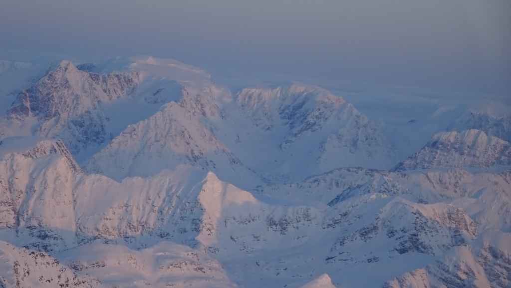 On décolle avec 1/2 heure de retard. Comme à l’aller, les paysages vus d’avion sont d’une beauté à couper le souffle alors qu le soleil commence sa longue descente…