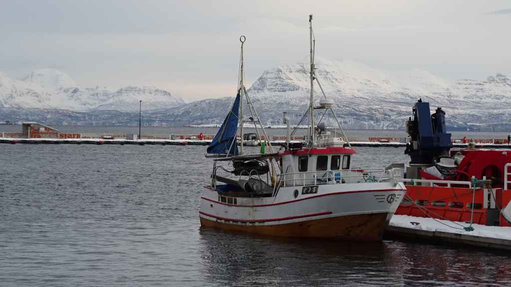 Lever pas trop matinal pour aller découvrir la ville de Harstadt au nord-ouest de Grov à 1 heure et 56 km. On visite la ville à pied (c’est rapide car il n’y a pas grand-chose à voir). On s’offre un petit resto car on a très envie de poisson frais, mais vu le prix, nous ne renouvellerons pas l’expérience (27 € le filet de cabillaud des Lofoten accompagné de ses légumes, certes excellents et copieux mais du coup privé de dessert !).