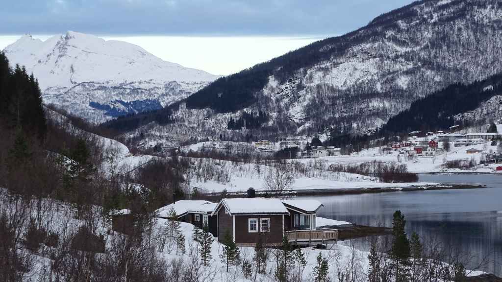 Mais ce n’est pas de trop, vu les conditions de routes verglacées pour redescendre vers le sud-ouest, à Grov. Il nous faut 4h30 et 245 km pour rejoindre le village situé au bord d’un fjord. C’est plus long que prévu mais la nuit tombe vite et il faut s’habituer à ce véhicule luxueux…