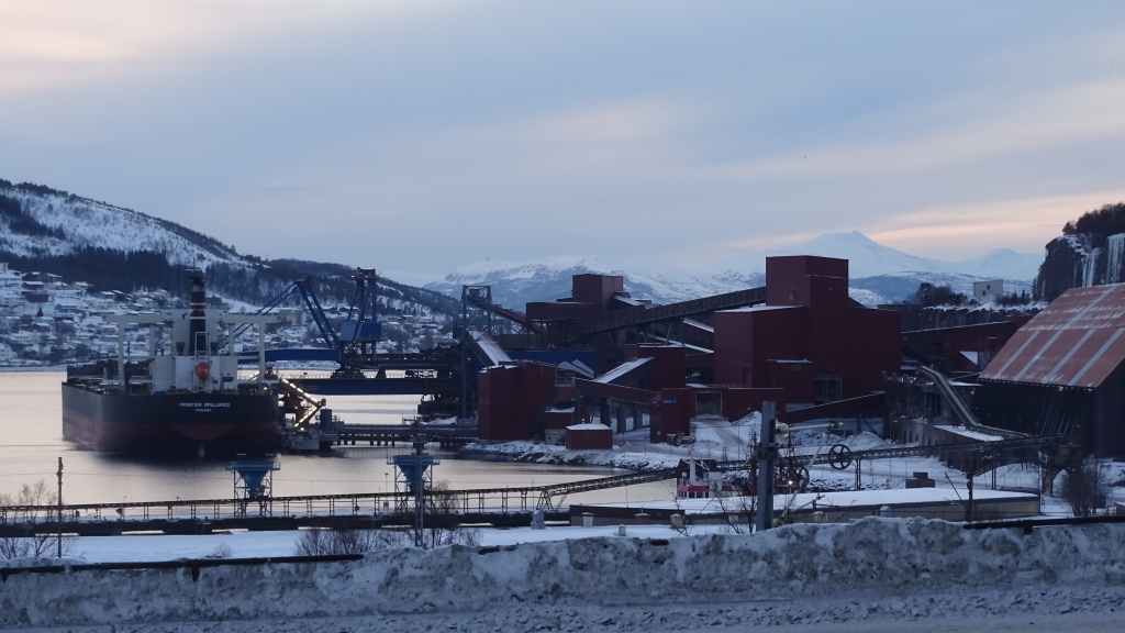 En effet, on fait un petit tour à pied et l’on aperçoit le port où un cargo de minerai est à quai et un train de wagons à minerai vide, d’une longueur impressionnante, est en train de manœuvrer à la gare. Sinon, quelques maisons relativement anciennes sont construites autour de l’église. Mais la ville date du début du XXème siècle, il n’y a donc pas de bâtiments très anciens.