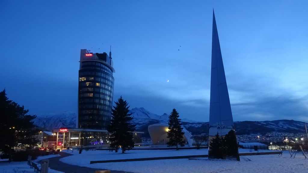 Elle est surnommée « le Paris du Nord (???!!!) et est la ville de plus de 50 000 habitants la plus septentrionale du monde. On se rend chez Hertz pour prendre en charge notre véhicule, théoriquement un Nissan Qashqai 4 roues motrices… Mais surprise, il n’y a plus ce véhicule, alors on nous fournit un véhicule équivalent mais bien plus haut de gamme : une Volvo XC60 T8 hybride… un régal !!!
