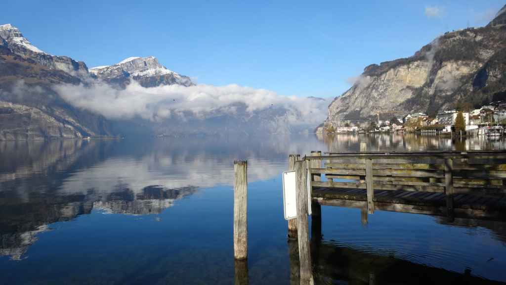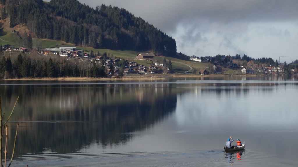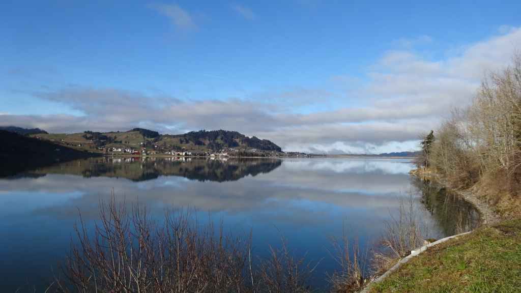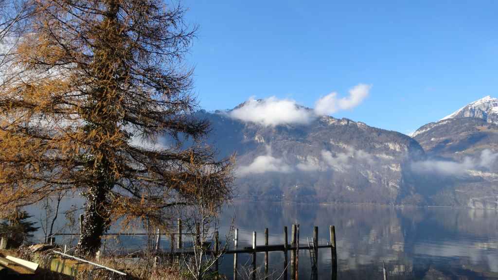 A la descente, nous nous retrouvons sous les nuages bas, mais rapidement le soleil revient et stoppons, pour le déjeuner, au bord du Sihlsee…