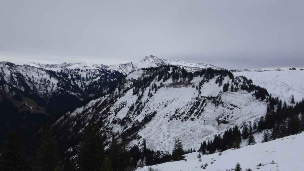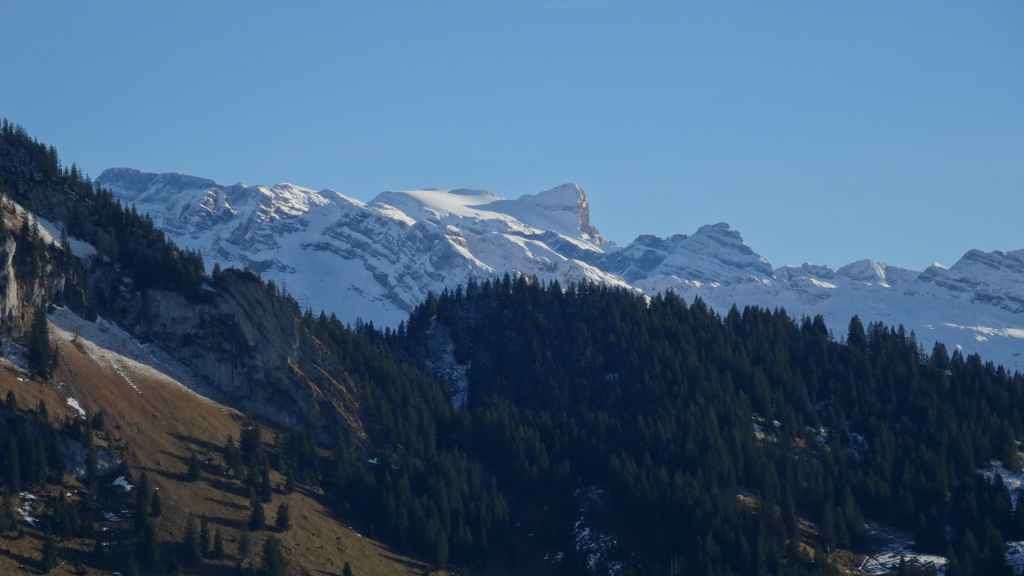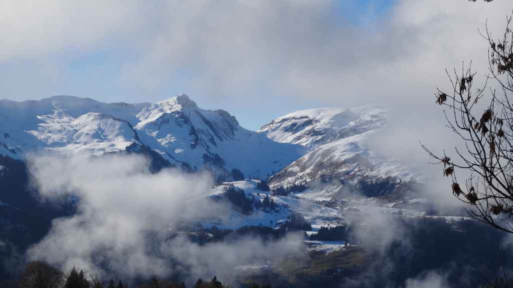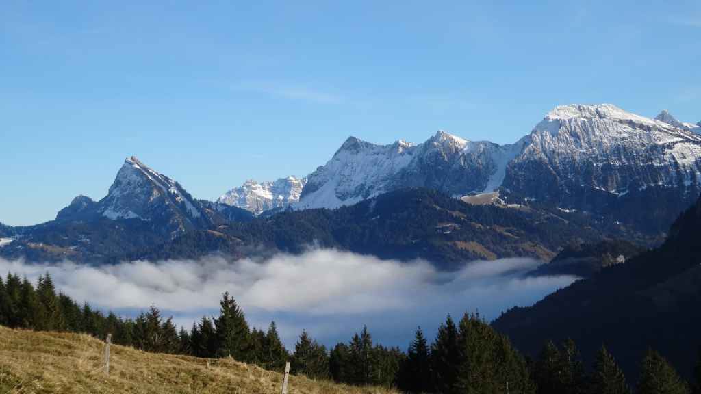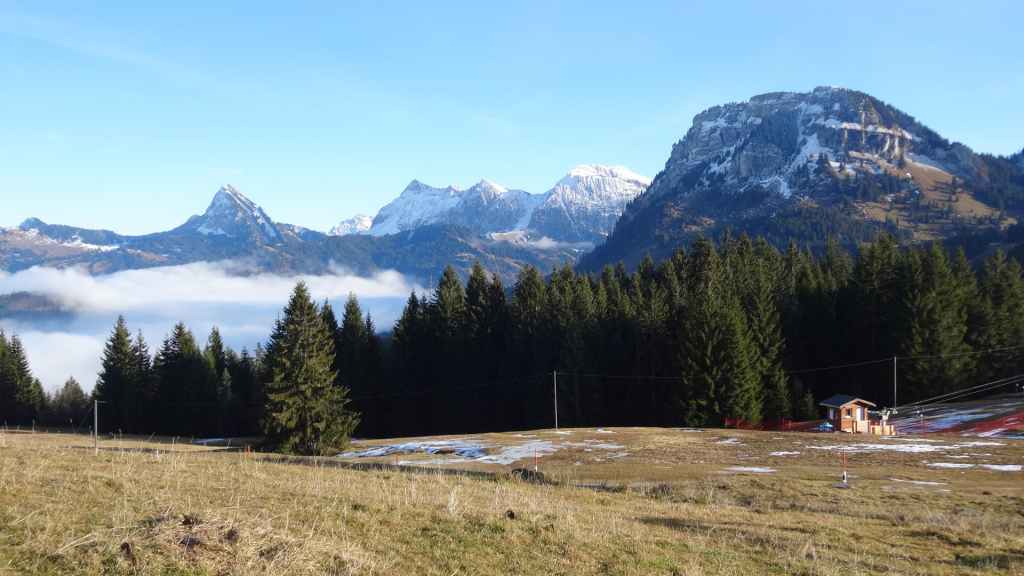 Nous franchissons ensuite, après une route très étroite, le col de Ibergeregg à 1406 m : là, pas de neige mais de beaux paysages…