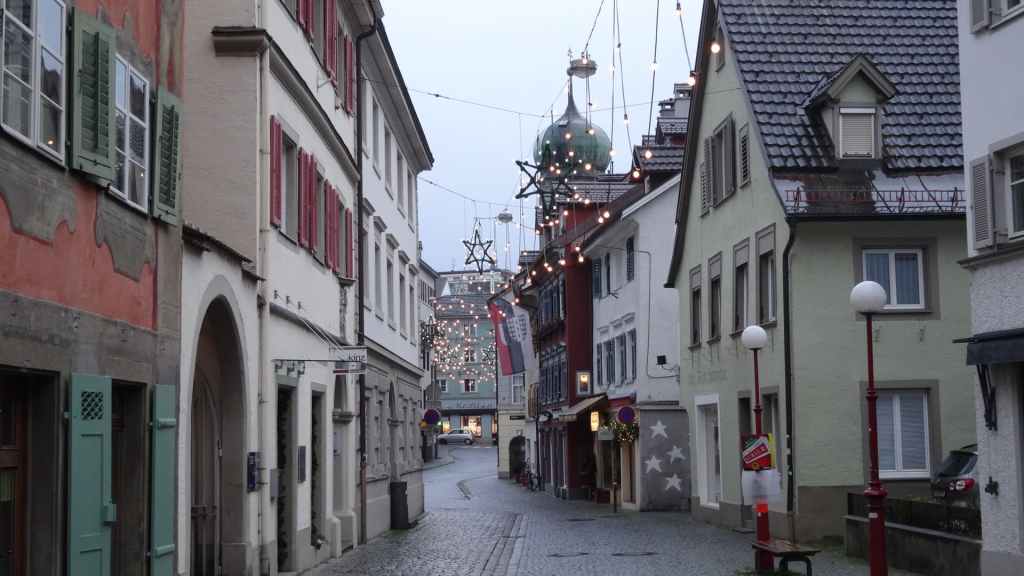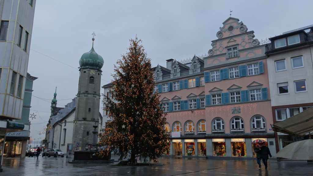 Vers 14h00, nous reprenons la route et stoppons à Dornbirn pour faire quelques courses, puis continuons jusqu’à Bregenz au bout du lac de Constance, le Bodensee. Nous sommes en fin d’après-midi et une petite pluie pas très méchante s’est mise à tomber. Ce n’est pas çà qui va nous empêcher de visiter la ville, à la nuit tombante.