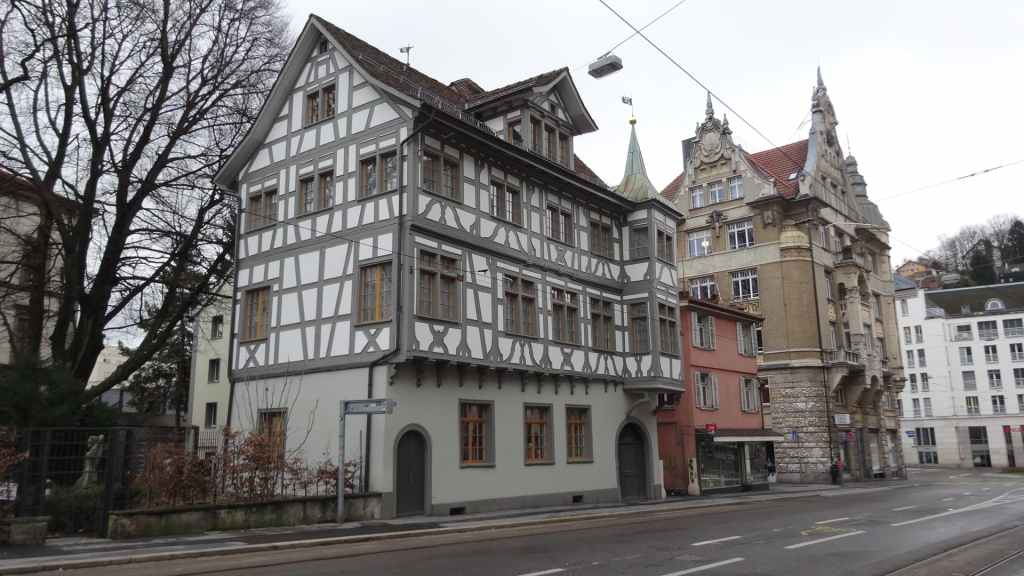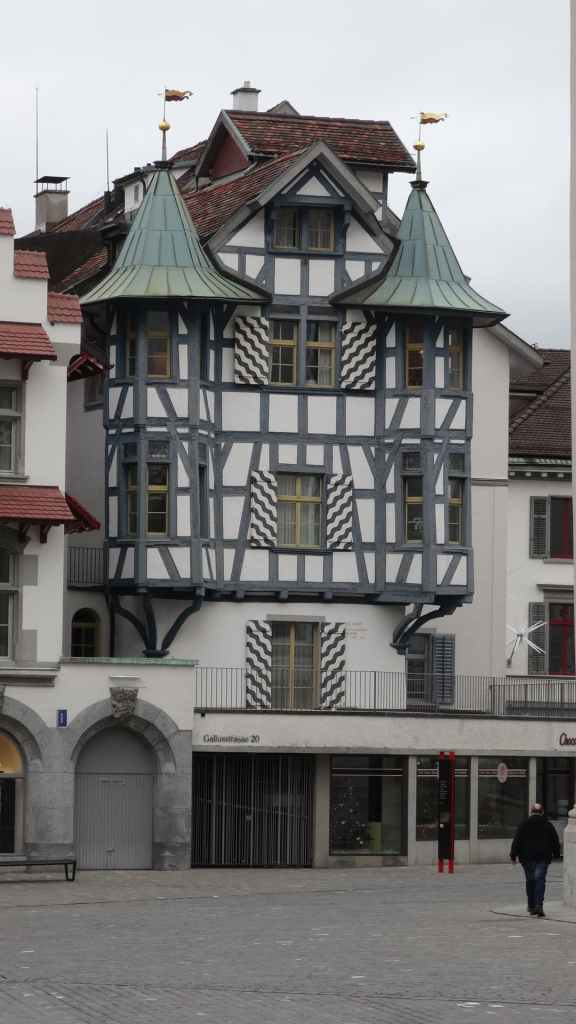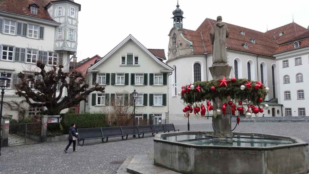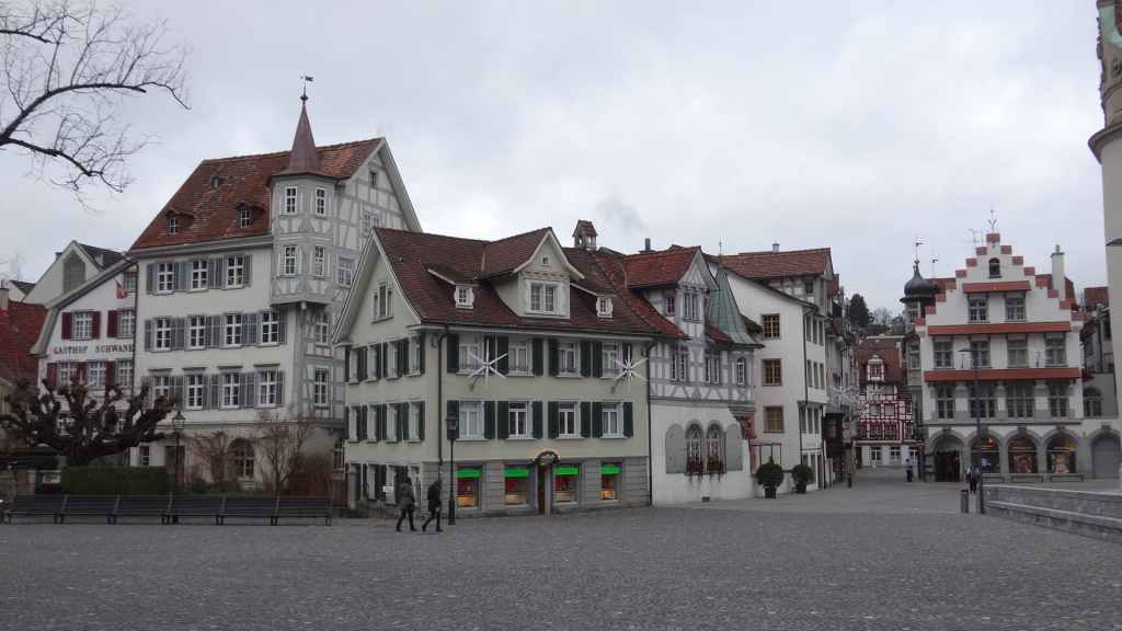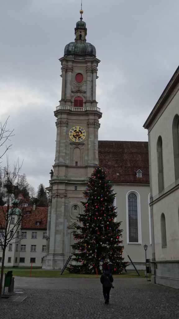 L’abbaye de St-Gall, situé dans la ville de Saint-Gall au nord-est de la Suisse, dont l’apparence actuelle est en grande partie le résultat des campagnes de construction du XVIIIe siècle, est un imposant ensemble architectural composé de différents bâtiments regroupés autour de la grande place du couvent : le côté ouest comprend l’ancienne église abbatiale (la cathédrale actuelle), flanquée de deux tours et de l’ancien cloître dont les ailes abritent aujourd’hui la Bibliothèque abbatiale ; à l’est se situe la « Neue Pfalz », actuel siège des autorités cantonales. Le côté nord, de l’autre côté de la place, se compose de bâtiments du XIXe siècle : l’ancien arsenal, la chapelle des enfants et des anges gardiens et l’ancienne école catholique.