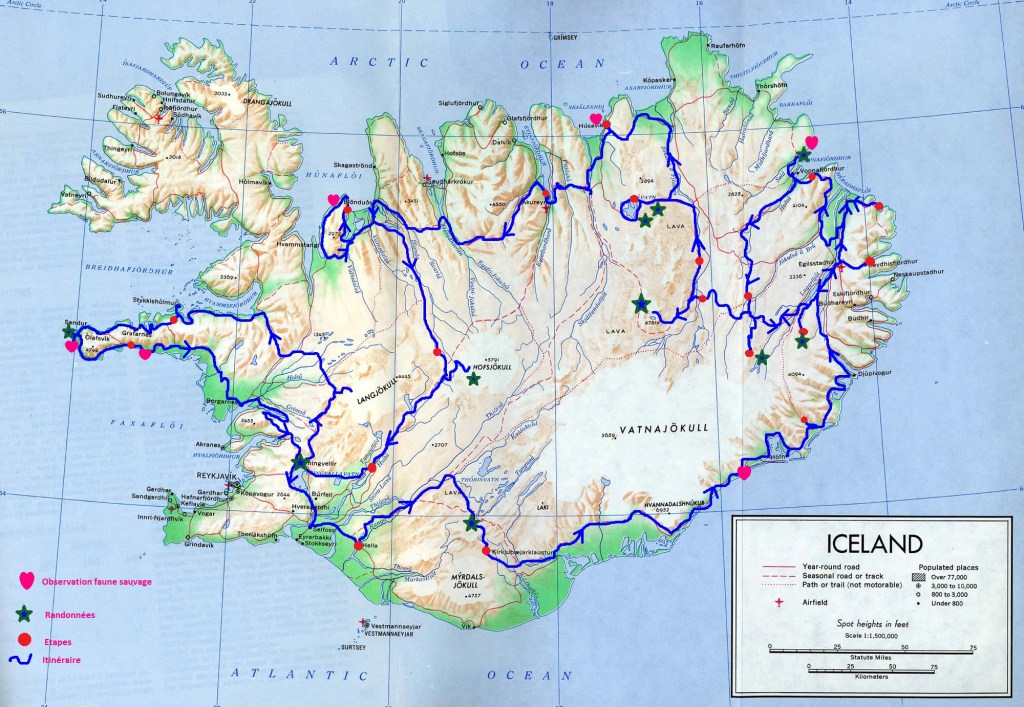 – carte Island au 1/500000 de l’islandais Ferdakort avec légende en français.