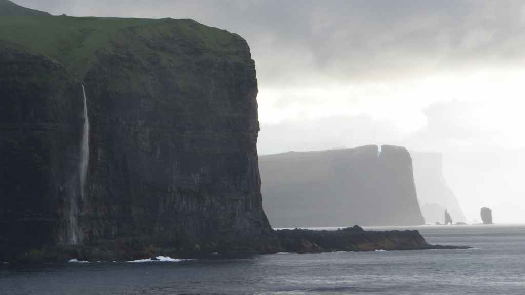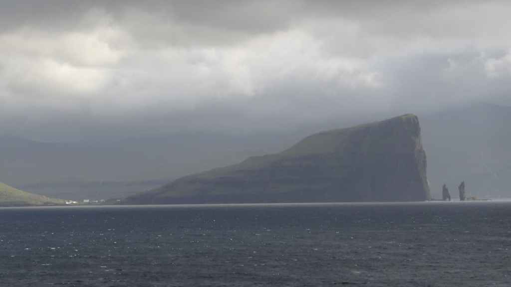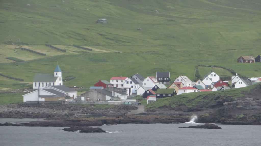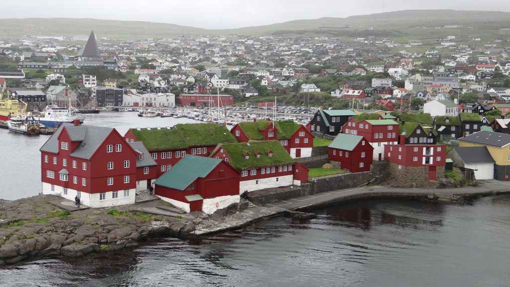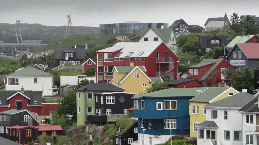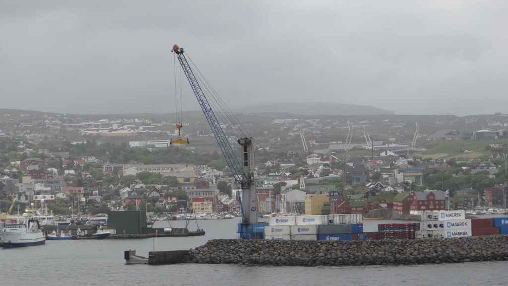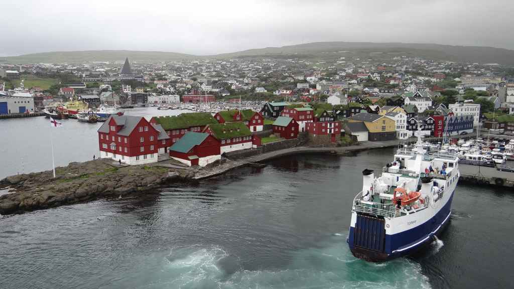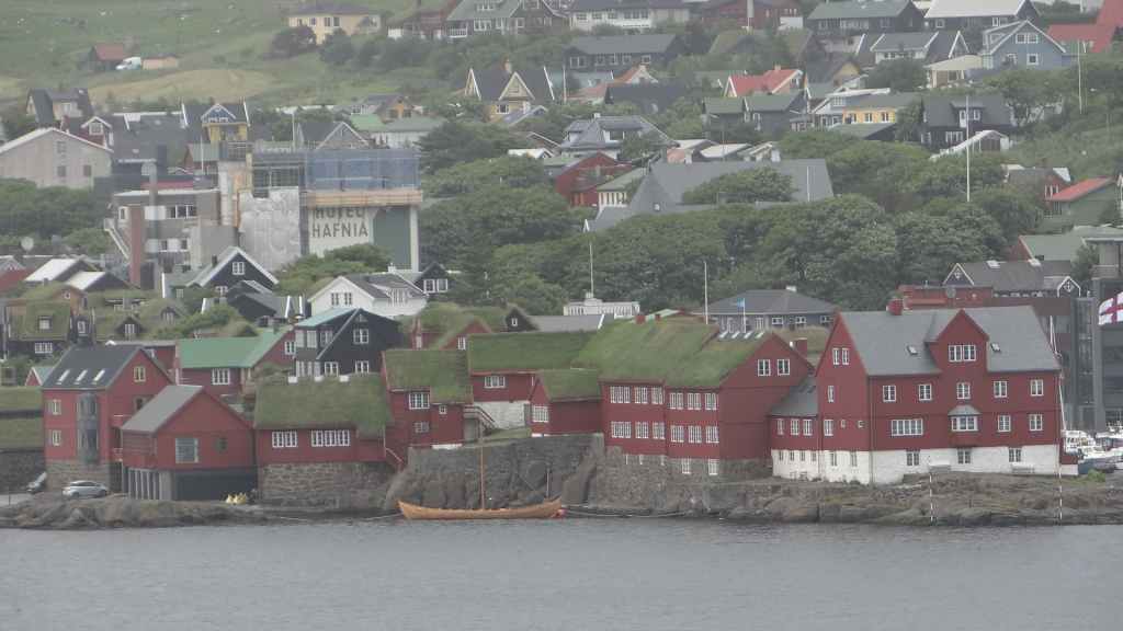 Nous sortons sur le pont pour admirer les dernières terres avant les îles Féroé. Peu avant midi, nous retournons prendre l’air, histoire de se donner un peu d’appétit. En effet, la mer, qui a forci, remue un peu le bateau et les estomacs, même si nous portons un patch de Scopoderm, contre le mal des transports. Vers 16h30, nous remontons sur le pont pour espérer voir les îles Féroé. Beaucoup de monde est déjà présent pour ce qui est l’attraction de la journée. Enfin, les îles apparaissent et au loin, la capitale Torshavn… Sans être énorme, la ville paraît plus grosse que nous pensions : église contemporaine, maisons multicolores et le centre ancien se trouve au bord des quais. Nous accostons vers 17h, pour laisser partir les visiteurs et habitants de l’archipel. Puis soirée peu active…