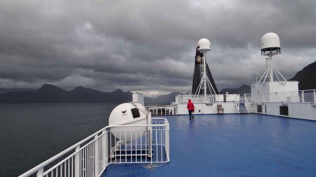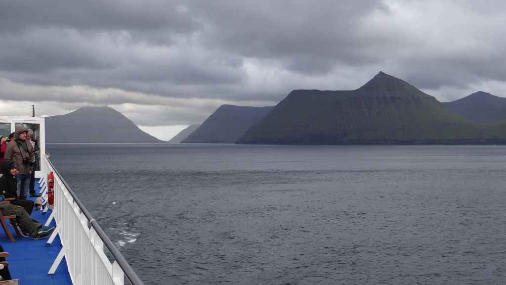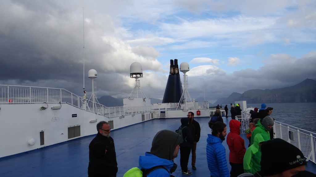 Nous avons rejoint l’île en ferry avec la compagnie des îles Féroe Smyril Line qui possède un seul bateau, le Norröna. Celui-ci fait environ 166 m de longueur et ses moteurs développent 30000 chevaux. Sa capacité est de 1482 passagers et 118 personnels et peut contenir jusqu’à 800 véhicules. Nous avons réservé directement sur leur site internet en anglais(www.smyrilline.com) mais l’on peut réserver aussi chez un voyagiste français Gallia, qui est le revendeur officiel de la compagnie (www.voyages-gallia.fr), mais l’acompte est plus élevé, sans que les prix le soient… mais en 2025, est-ce toujours d’actualité ?