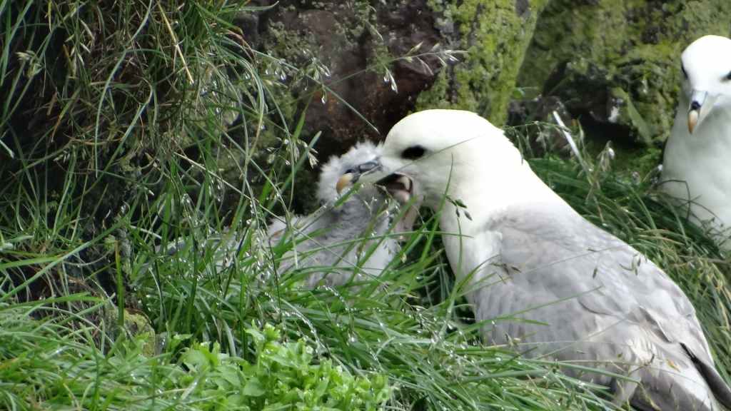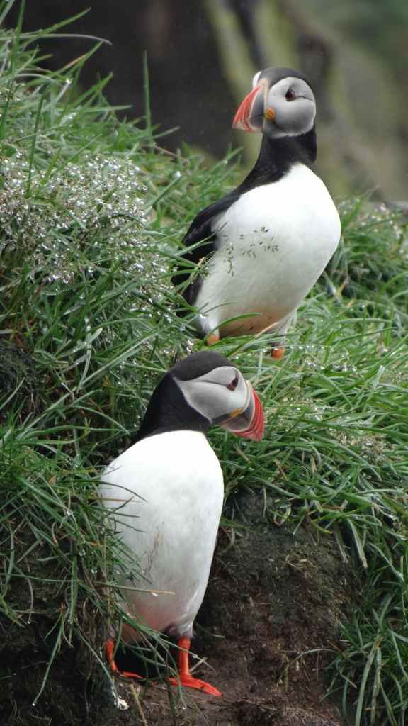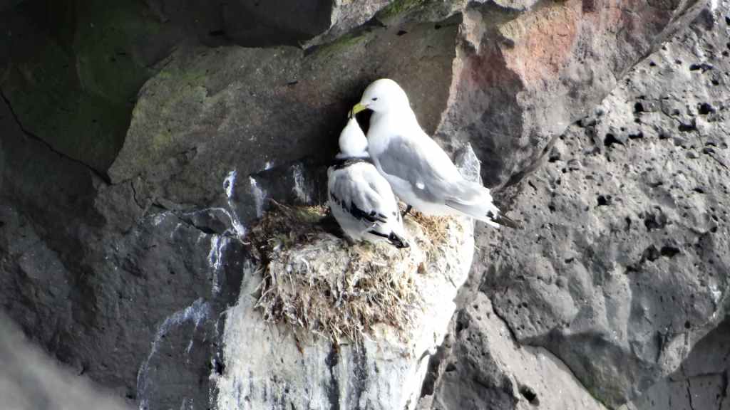 Nous parcourons la route et nos premières pistes pour rejoindre le village de Bakkagerdi situé en bord d’océan. La pluie s’arrête juste pour nous permettre d’observer ces jolis et sympathiques macareux mais également des mouettes en plein nourrissage de leur progéniture.