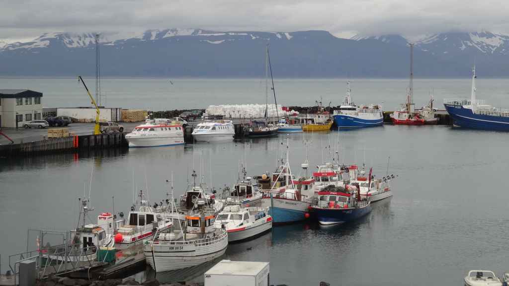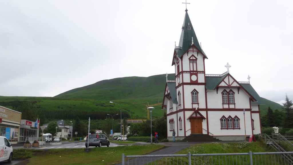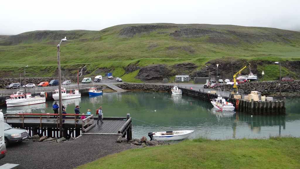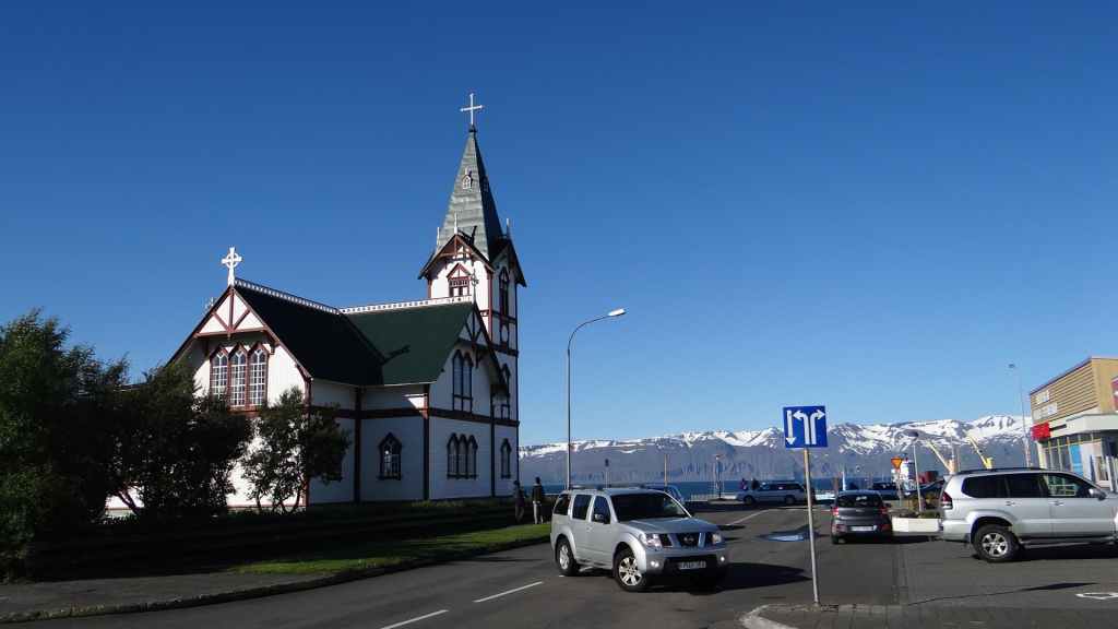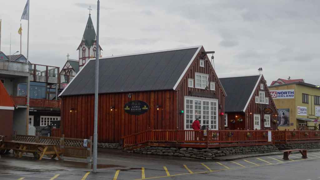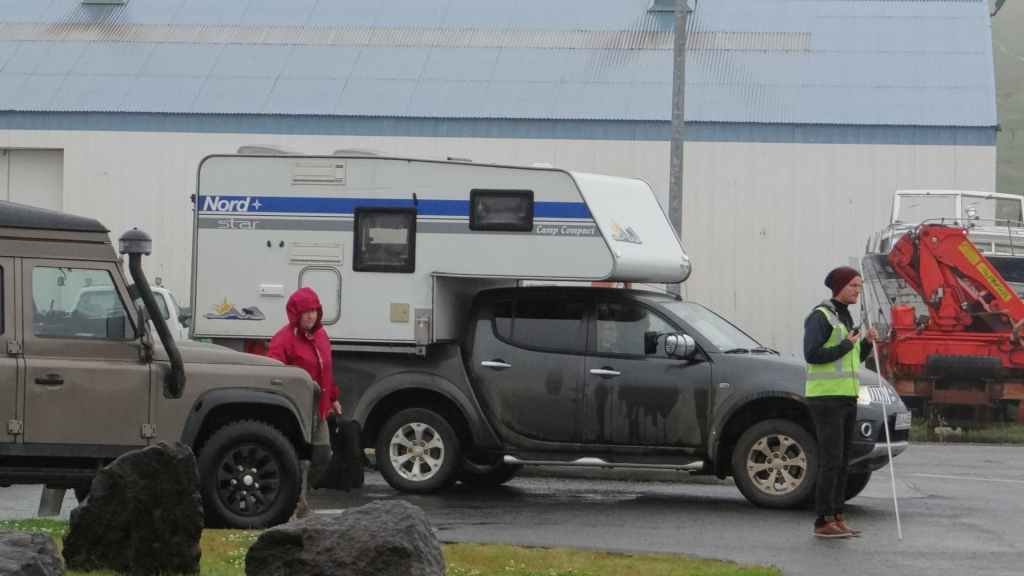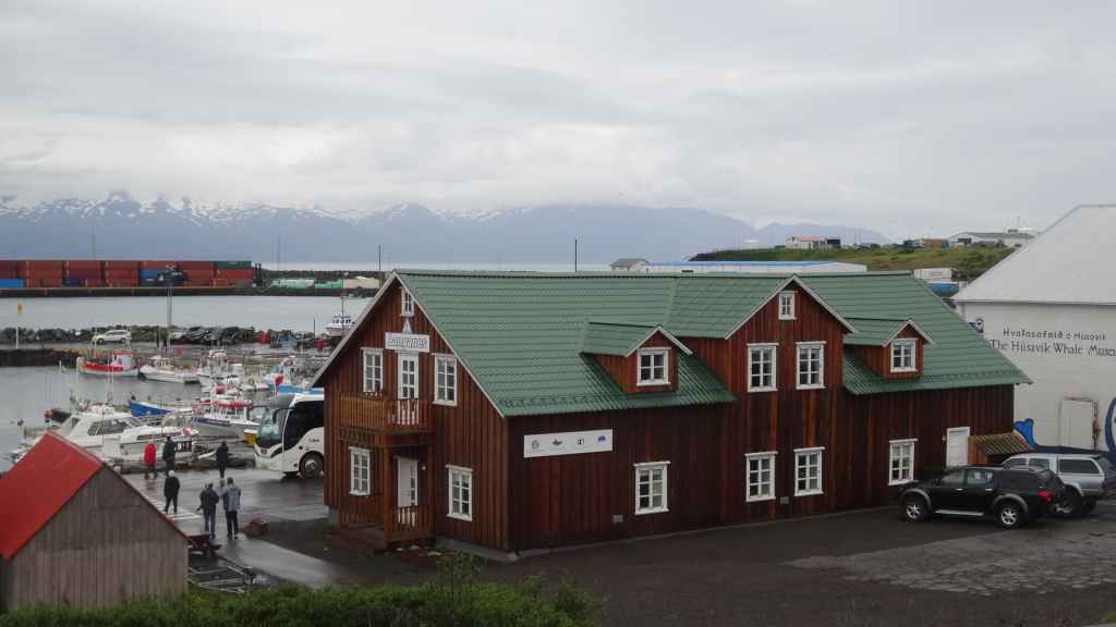 Après le repas, on reprend la piste en plus ou moins bon état qui remonte vers le nord et la mer du Groenland. C’est sur cette piste qu’une des fixations de la cellule s’arrache définitivement. Le côté gauche est désormais tenu que par un seul anneau. Il va falloir être précautionneux ! Nous arrivons à Husavik en fin d’après-midi sous la pluie, et après contrôle de la météo, nous réservons nos places pour une chasse photographique à la baleine pour le lendemain. Nous dormons sur un parking réservé au CC à 300 m du port.