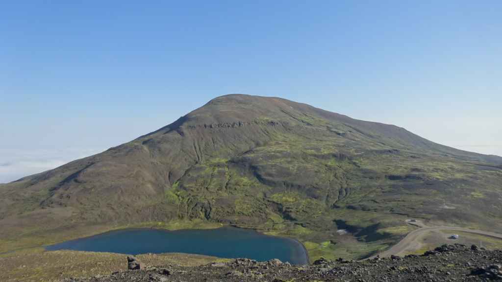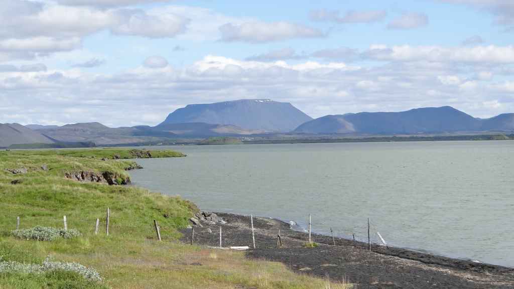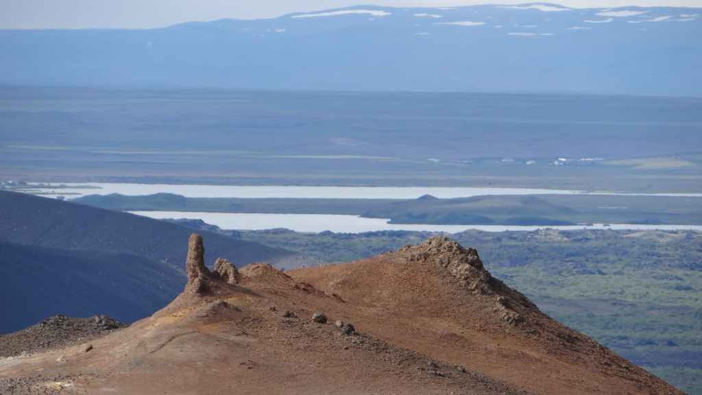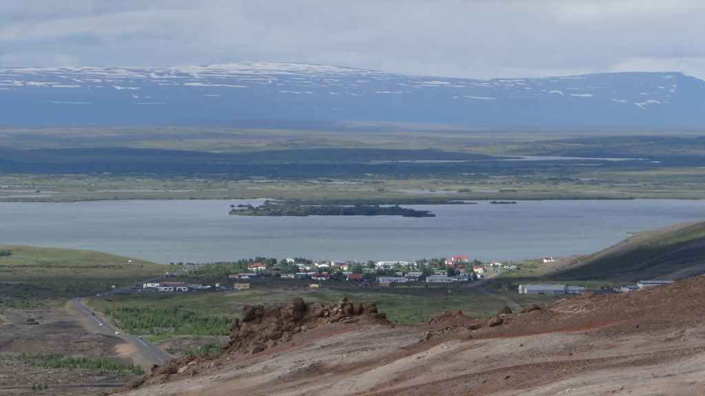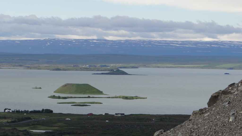 Nous en profitons pour gravir le Namafjall qui nous offre une vue panoramique sur le lac Myvatn et sur le village touristique de Reykjahliđ où nous passons la nuit au camping Hlid (GPS : N65°38.582 : W 16°55.003).