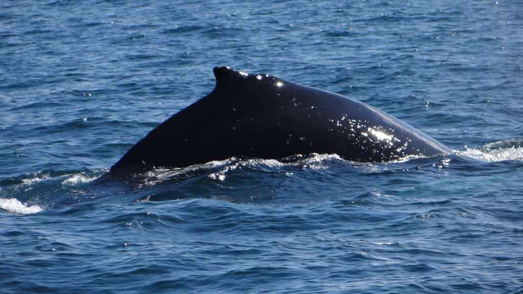 Puis nous voyons le dos puis la queue quand elle plonge dans les grands fonds. Cette scène se répétera plusieurs fois devant les yeux ébahis des nombreux chinois présents sur le bateau. L’apparition de plusieurs dauphins permettra de finir en beauté ce tour de 3 heures en mer.
