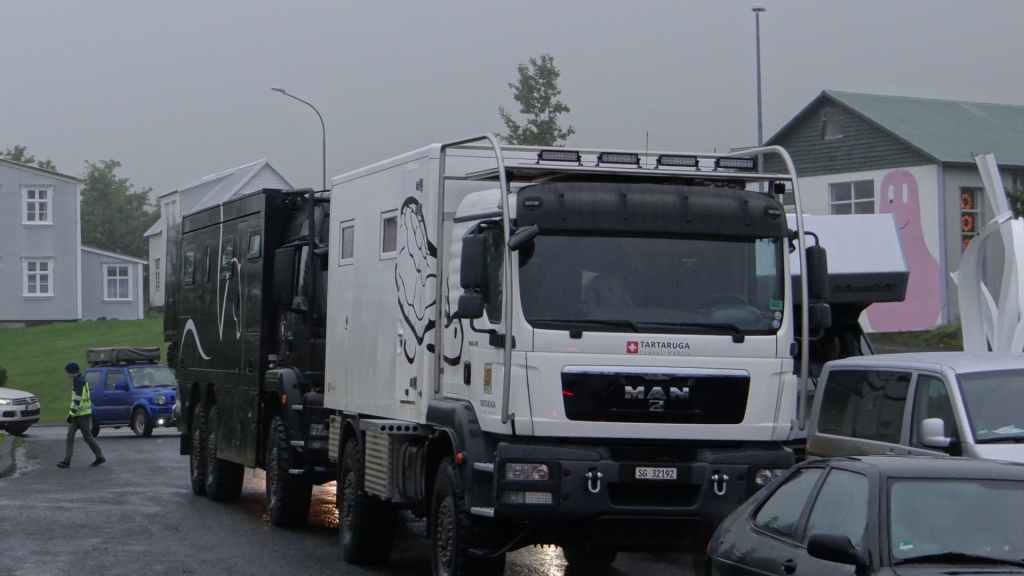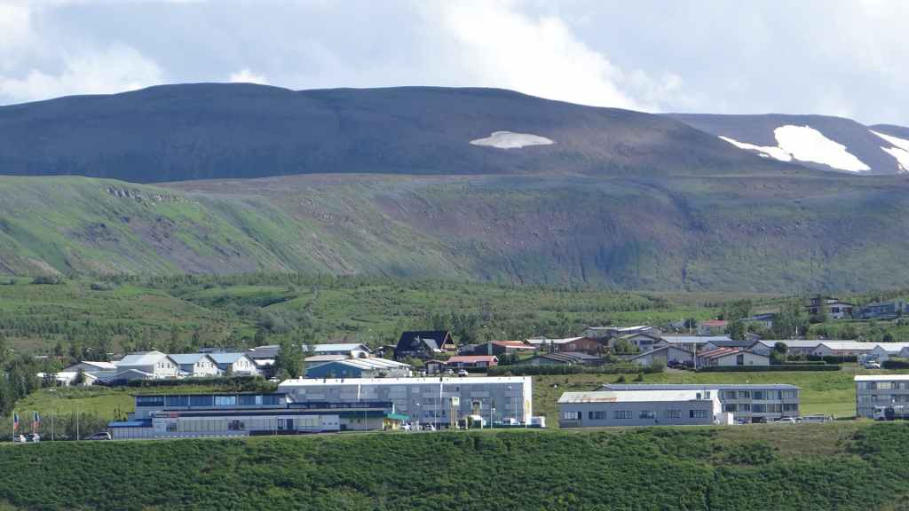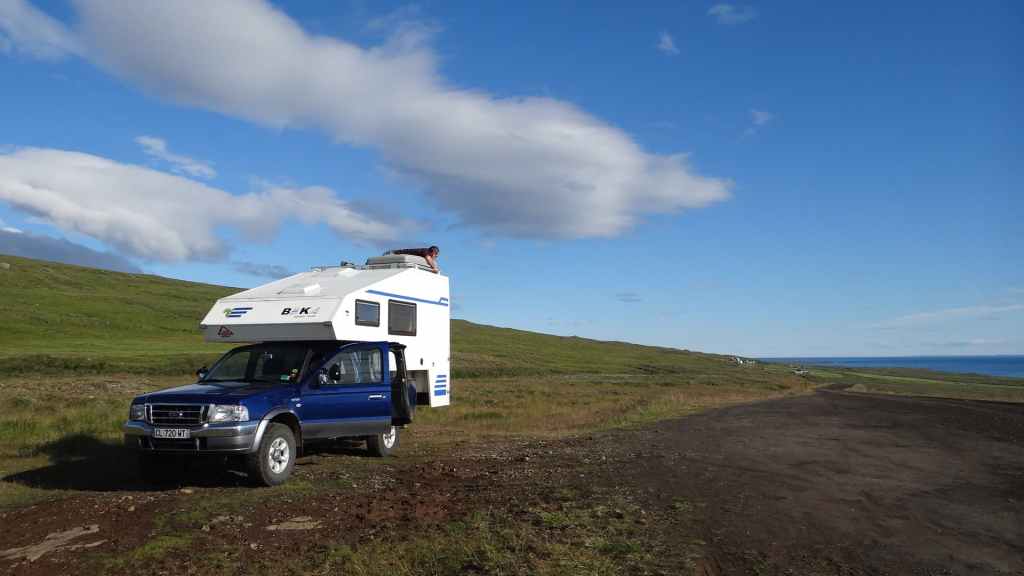 Mais en revenant au parking… surprise ! La fenêtre de cuisine de notre tortue a disparue ! Il devient évident que l’on a oublié de la fermer après le repas et qu’elle s’est envolée en route… Nous faisons demi-tour sur une vingtaine de kilomètres, en espérant la retrouver mais c’est peine perdue et très ennuyeux ! Nous rejoignons donc Akuleyri, 2ème ville du pays, dans la soirée où nous avons prévu de retrouver des amis, eux aussi en vacances dans l’île en CC. Ils nous attendent à la première station de la ville et ont repérer du gros scotch pour boucher et étanchéifier l’ouverture. Heureusement, dans un pays où la délinquance est extrêmement faible, on ne risque pas le vol.